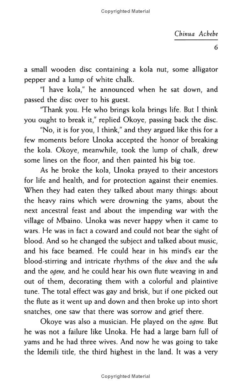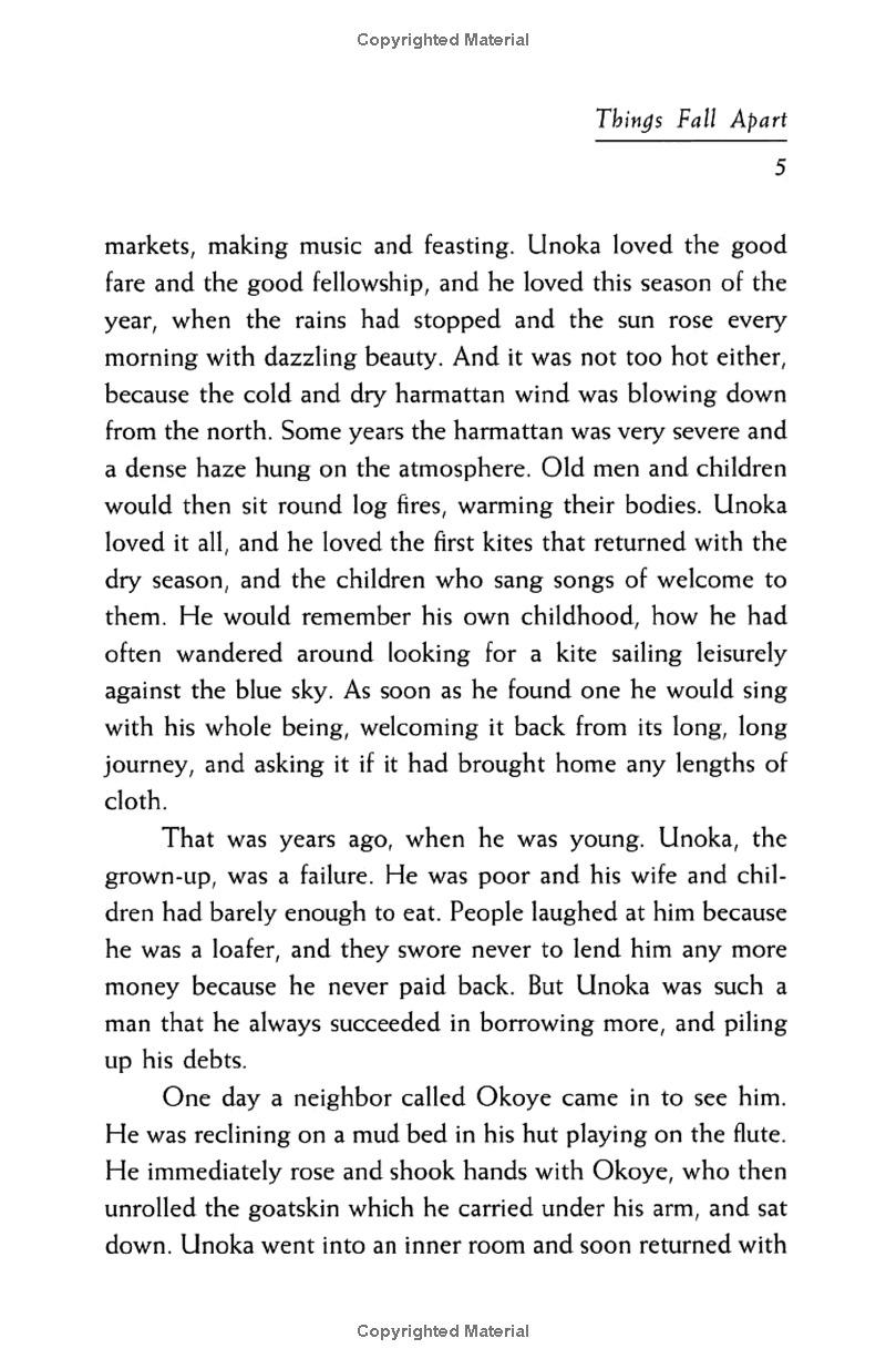 Things Fall Apart is the first of three novels in Chinua Achebe's critically acclaimed African Trilogy. It is a classic narrative about Africa's cataclysmic encounter with Europe as it establishes a colonial presence on the continent. Told through the fictional experiences of Okonkwo, a wealthy and fearless Igbo warrior of Umuofia in the late 1800s, Things Fall Apart explores one man's futile resistance to the devaluing of his Igbo traditions by British political andreligious forces and his despair as his community capitulates to the powerful new .
