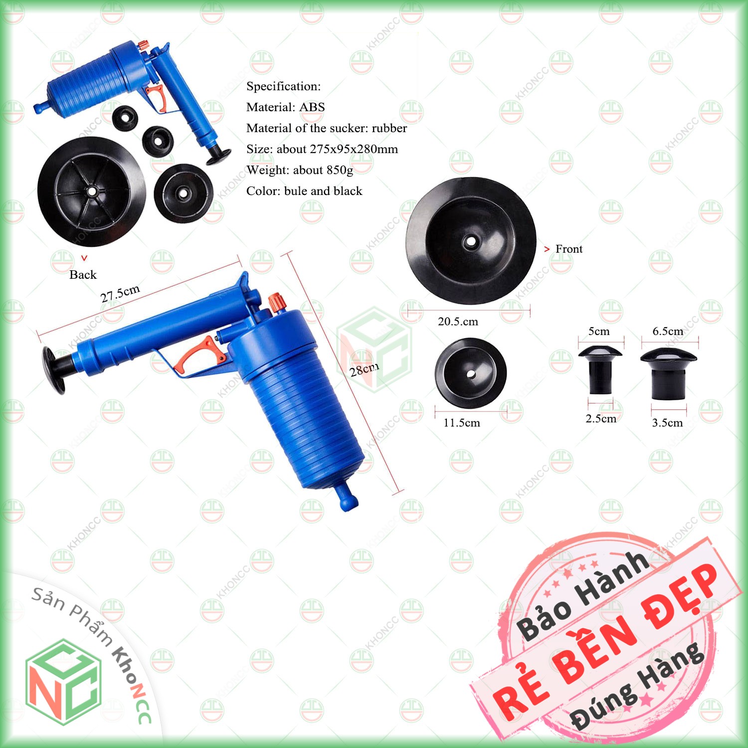 Dụng cụ thông tắc cống, bồn cầu khí nén có thiết kế nhỏ gọn hiện đại, dễ sử dụng giúp bạn đánh bật tóc, giấy, rác, các loại chất thải gây tắc nghẽn bồn cầu,