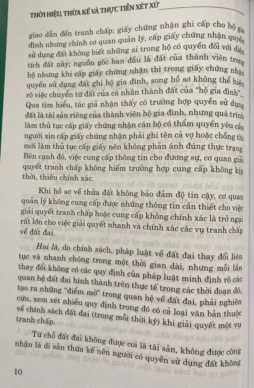 Qua thực tiễn xét xử cho thấy, việc hiểu và áp dụng các quy định của pháp luật về thời hiệu trong các vụ việc dân sự nói chung, tranh chấp về thừa kế nói riêng đang còn có những quan điểm, ý kiến khác nhau. Cũng vì nguyên nhân này mà có một số vụ việc đường lối giải quyết của các cấp Tòa án không thống nhất, phải xét xử nhiều lần, gây nhiều tốn kém cả về thời gian, công sức, tiền bạc cho cơ quan tiến hành tố tụng cũng như người dân, nhất là đối với những vụ việc thừa kế mà thời điểm mở thừa kế đã diễn ra nhiều năm trước, khi pháp luật có sự thay đổi, các quan hệ đã có nhiều biến động, việc thu thập tài liệu, chứng cứ gặp nhiều khó khăn...