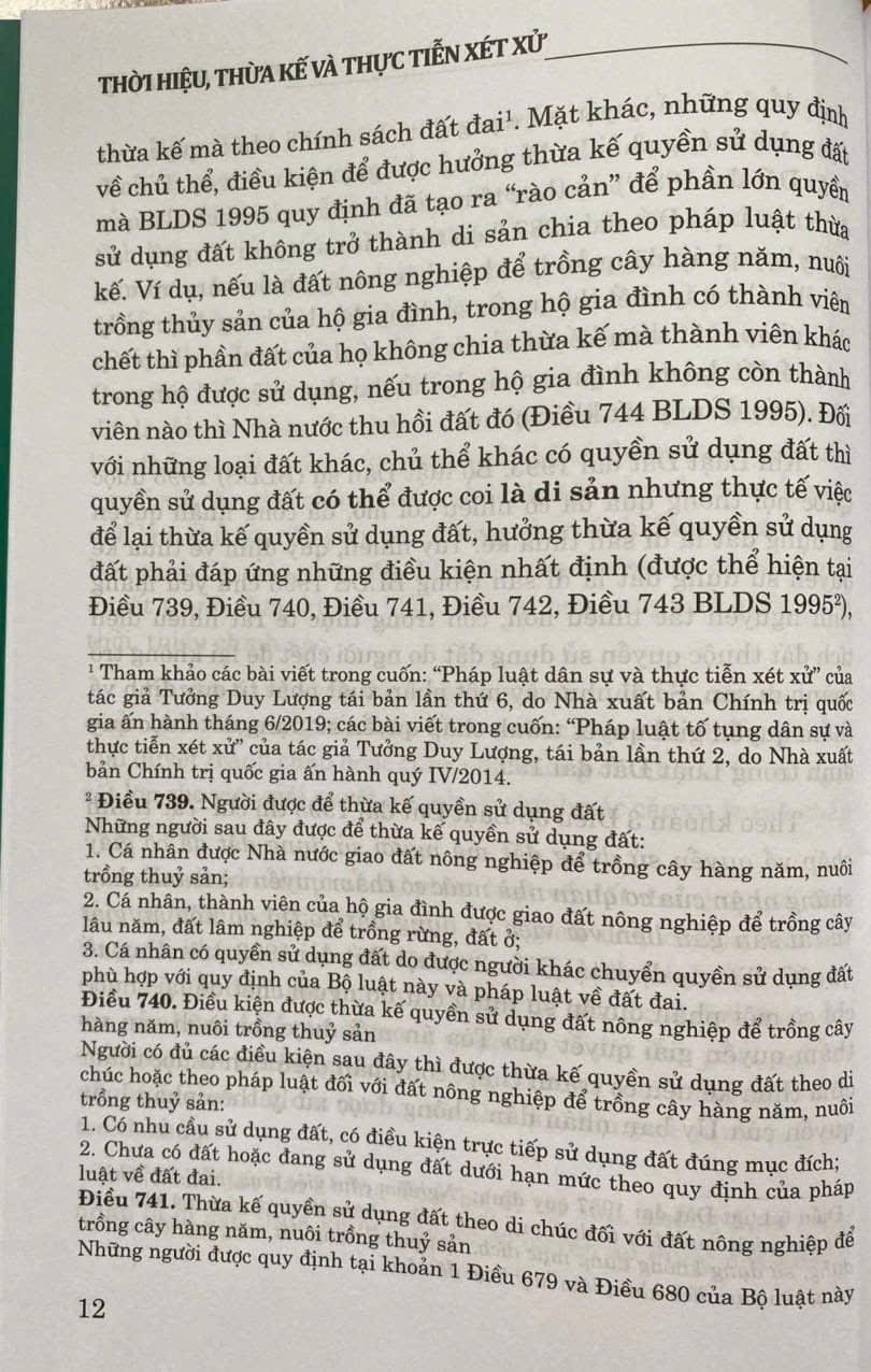 Với mục đích góp phần nâng cao nhận thức trong thực thi và áp dụng pháp luật ngày một tốt hơn, tạo sự thống nhất trong thực tiễn xét xử, từ đó làm cho các quy định rất hợp lý, khoa học về thừa kế, về thời hiệu của Bộ luật Dân sự có sức sống mạnh mẽ hơn nữa, Nhà xuất bản Tư pháp tái bản có sửa đổi, bổ sung cuốn Thời hiệu, thừa kế và thực tiến xét xử của Luật sư, Trọng tài viên Trung tâm Trọng tài quốc tế Việt Nam (VIAC) Tưởng Duy Lượng - nguyên Phó Chánh án Tòa án nhân dân tối cao, người có bề dày trong công tác nghiên cứu khoa học pháp lý, với vốn kiến thức chuyên sâu về lý luận trong lĩnh vực pháp luật dân sự nói chung, pháp luật về thời hiệu, thừa kế nói riêng và kinh nghiệm nhiều năm trực tiếp xét xử các vụ việc dân sự, kinh tế.