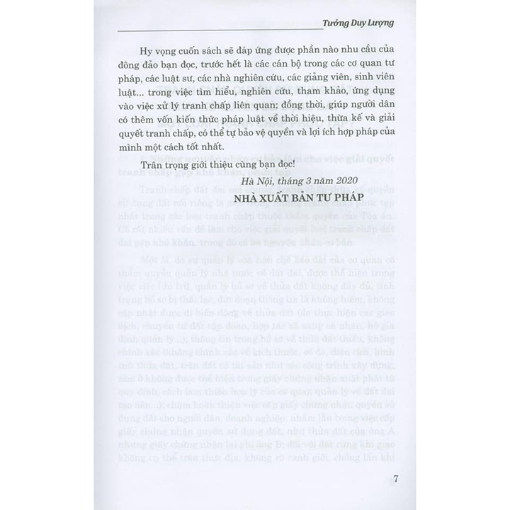 Trong xu thế hội nhập và phát triển, để các quan hệ dân sự phát huy được tác dụng tích cực, góp phần thúc đẩy xã hội phát triển lành mạnh thì phải tạo sự ổn định cho các quan hệ dân sự, từ đó tạo tâm lý yên tâm cho các chủ thể trong giao lưu dân sự. Do đó, pháp luật quy định các thời hạn để các bên có thể lựa chọn cách xử sự cho phù hợp vì lợi ích của mình. Khi kết thúc thòi hạn đó trong những điều kiện theo luật định có thể làm phát sinh hay chấm dứt quyền, nghĩa vụ của những chủ thể có liên quan. Thời hạn đó được gọi là thời hiệu.Qua thực tiễn xét xử cho thấy, việc hiểu và áp dụng các quy định của pháp luật về thời hiệu trong các vụ việc dân sự nói chung, tranh chấp về thừa kế nói riêng đang còn có những quan điểm, ý kiến khác nhau. Cũng vì nguyên nhân này mà có một số vụ việc đường lối giải quyết của các cấp Tòa án không thông nhất, phải xét xử nhiều lần, gây nhiều tốn kém cả về thời gian, công sức, tiền bạc cho cơ quan tiến hành tố tụng cũng như người dân, nhất là đối với những vụ việc thừa kê mà thời điểm mở thừa kế đã diễn ra nhiều năm trước, khi pháp luật có sự thay đổi, các quan hệ đã có nhiều biến động, việc thu thập tài liệu, chứng cứ gặp nhiều khó khán...Pháp lệnh Thừa kế 1990 lần đầu tiên đã quy định về thời hiệu thừa kế, là cơ sở cho việc tính thời hiệu thừa kế của các vụ việc đã mở trước, trong và sau khi Pháp lệnh này có hiệu lực. Bộ luật Dân sự 1995, Bộ luật Dân sự 2005 và các văn bản hướng dẫn thi hành trên cơ sở kế thừa và quy định cụ thể hơn đã tạo cơ sở pháp lý vững chắc cho việc xác định thời hiệu khởi kiện về thừa kế và các quan hệ pháp luật liên quan. Khi Bộ luật Dân sự 2015 được ban hành đã đánh dấu một bước tiến quan trọng trong kỹ thuật lập pháp, tư duy pháp lý trong việc điều chỉnh các quan hệ dân sự nói chung, quan hệ pháp luật thừa kế nói riêng, đặc biệt là các quy định về thời hiệu thừa kế, thời hiệu hưởng quyền dân sự, miễn trừ nghĩa vụ dân sự.Với mục đích góp phần nâng cao nhận thức trong thực thi và áp dụng pháp luật ngày một tốt hơn, tạo sự thống nhất trong thực tiễn xét xử, từ đó làm cho các quy định rất hợp lý, khoa học về thừa kế, về thời hiệu của Bộ luật Dân sự có sức sống mạnh mẽ hơn nữa, Nhà xuất bản Tư pháp tái bản có sửa đổi, bổ sung cuốh Thời hiệu, thừa kế và thực tiễn xét xử của Luật sư, Trọng tài viên Trung tâm Trọng tài quốc tế Việt Nam (VIAC) Tưởng Duy Lượng - nguyên Phó Chánh án Tòa án nhân dân tối cao, người có bề dày trong công tác nghiên cứu khoa học pháp lý, với vốn kiến thức chuyên sâu về lý luận trong lĩnh vực pháp luật dân sự nói chung, pháp luật về thời hiệu, thừa kế nói riêng và kinh nghiệm nhiều năm trực tiếp xét xử các vụ việc dân sự, kinh tế.Qua nghiên cứu về lý luận, về thực tiễn, trên cơ sở những vụ việc cụ thể hoặc những tình huống giả định có thể xảy ra trong thực tiễn để minh họa, làm rõ từng chủ đề được nêu trong cuốn sách, từ đó đưa ra những nhận xét, bình luận và các đề xuất về nội dung cần hướng dẫn, sửa đổi, bổ sung luật hoàn toàn mang tính khoa học và thể hiện quan điểm của riêng tác giả.