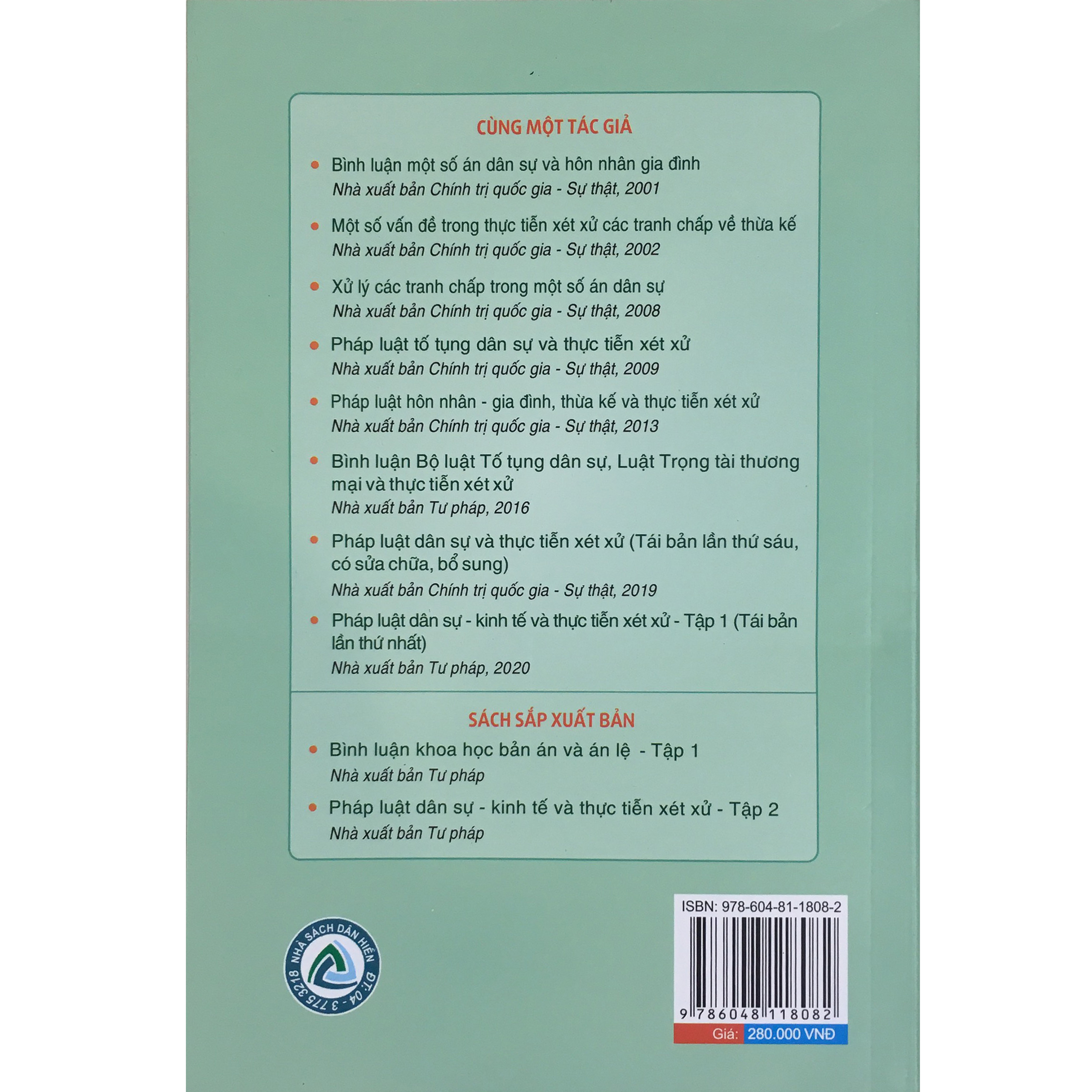 100 câu hỏi giải quyết tranh chấp thừa kế tại tòa Tác giả: Viện kinh tế pháp luật toàn cầu- Chu Xuân Minh (chủ biên) Nhà xuất bản: Tư pháp Công ty phát hành: NXB