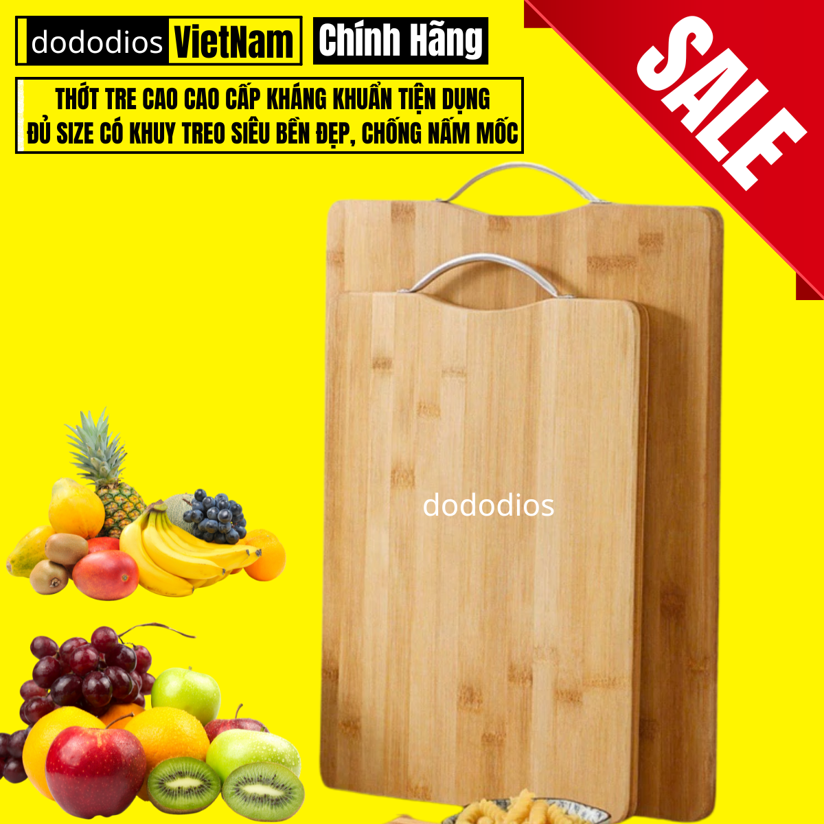 Chính hãng dododios Thớt Tre Kháng Khuẩn Cao Cấp - Có Khuy Treo Chống Nấm Mốc Bền Đẹp Kháng Khuẩn