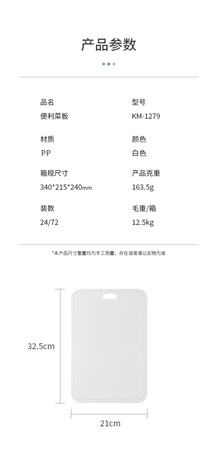 Mua tại TiktokThớt uốn dẻo, chia vạch đa năng 2mm KM-1279 hàng Nhật Mã sản phẩm : KM-1279 Kích thước: 32.5 x 21 x 0.2 cm Trọng lượng : 165gr Màu sắc: Trắng Mặt trước có vân để thức ăn không bị trơn trượt, mặt sau nhẵn bóng dễ dàng vệ sinh và để lên các bề mặt khác nhau Chất liệu: Nhựa PE Chịu nhiệt đến 70oC