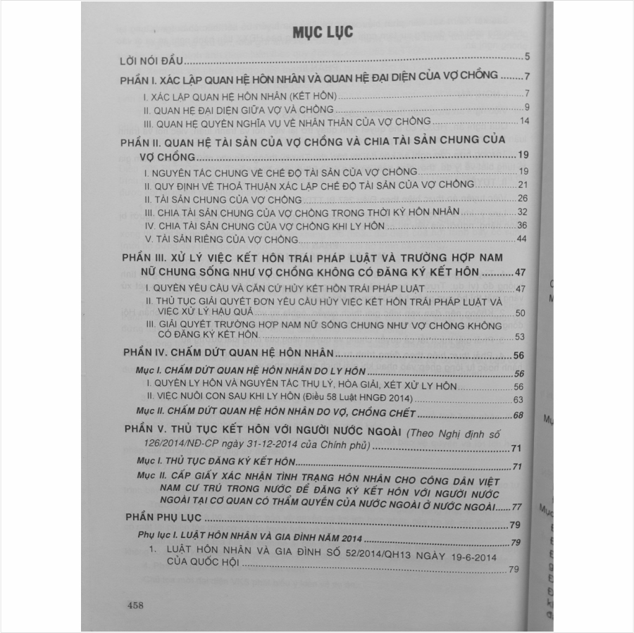 - Phần thứ ba. Xử lý về việc kết hôn trái pháp luật và những trường hợp nam nữ sống chung như vợ chồng không có đăng ký kết hôn.