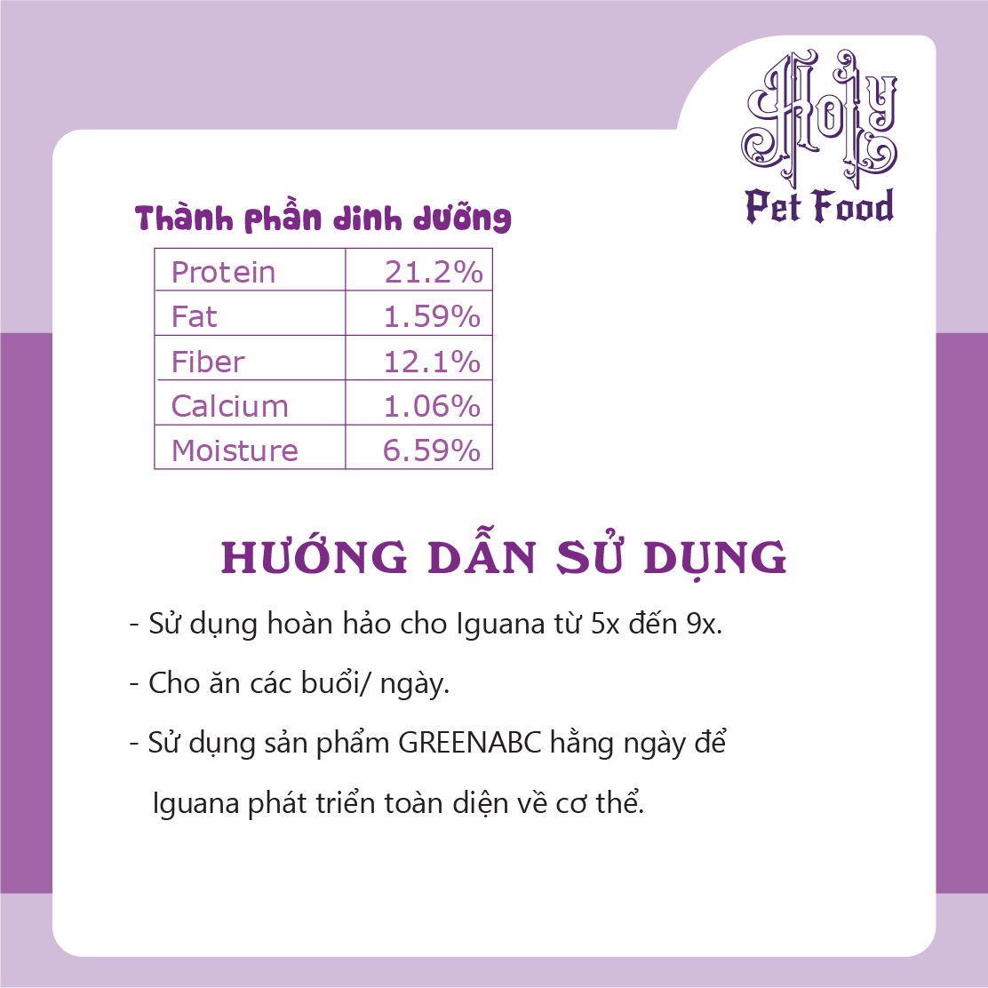 GREENABC - THỨC ĂN IGUANA BABY - Rồng Nam Mỹ Baby từ mới nở đến 9x. GREENABC là thức ăn cao cấp dành cho Iguana Baby - Rồng Nam Mỹ Baby Đặc biệt sản phẩm