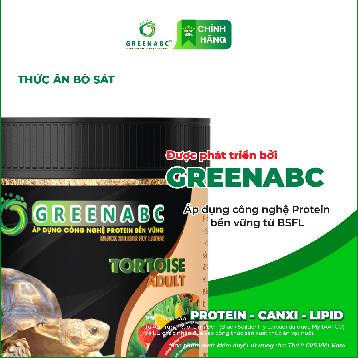 GREENABC - THỨC ĂN RÙA CẠN 100% TỪ THỰC VẬT - HÀM LƯỢNG PROTEIN 20% GREENABC là thức ăn cao cấp dành cho các loại RÙA CẠN. Đặc biệt sản phẩm GREENABC được sản xuất