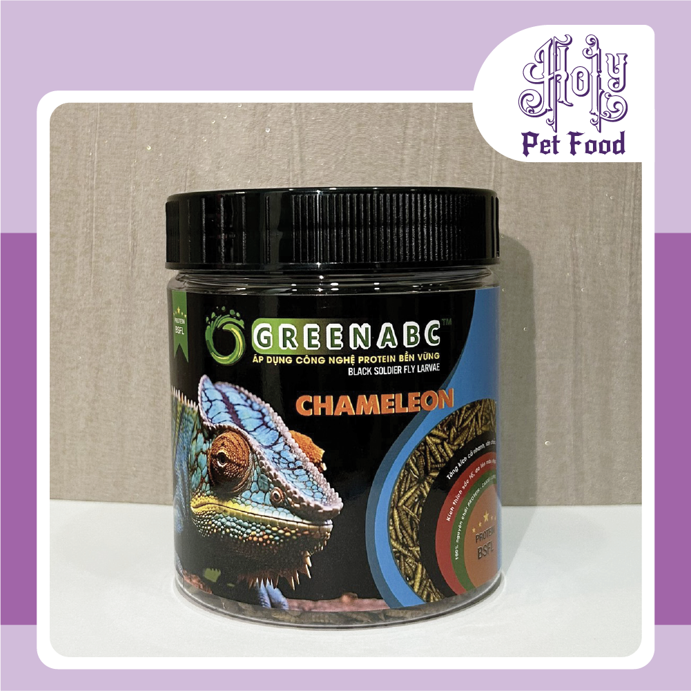 THỨC ĂN TẮC KÈ HOA CHAMELEON - BỔ SUNG DINH DƯỠNG PROTEIN 44.9%, CANXI 1.33%, LIPID 20.1% Sản phẩm GREENABC cung cấp các giá trị dinh dưỡng bền vững cho thú cưng, giúp cho