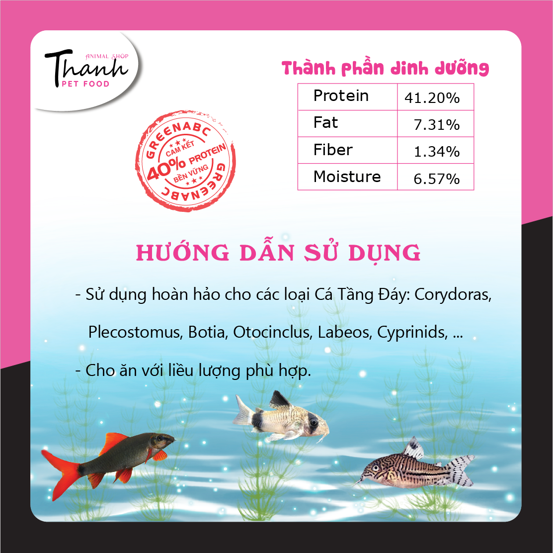 THỨC ĂN CAO CẤP DÀNH CHO CÁ TẦNG ĐÁY Sản phẩm GREENABC cung cấp các giá trị dinh dưỡng bền vững cho vật nuôi, giúp cho các loại CÁ TẦNG ĐÁY: - Kích thích ăn