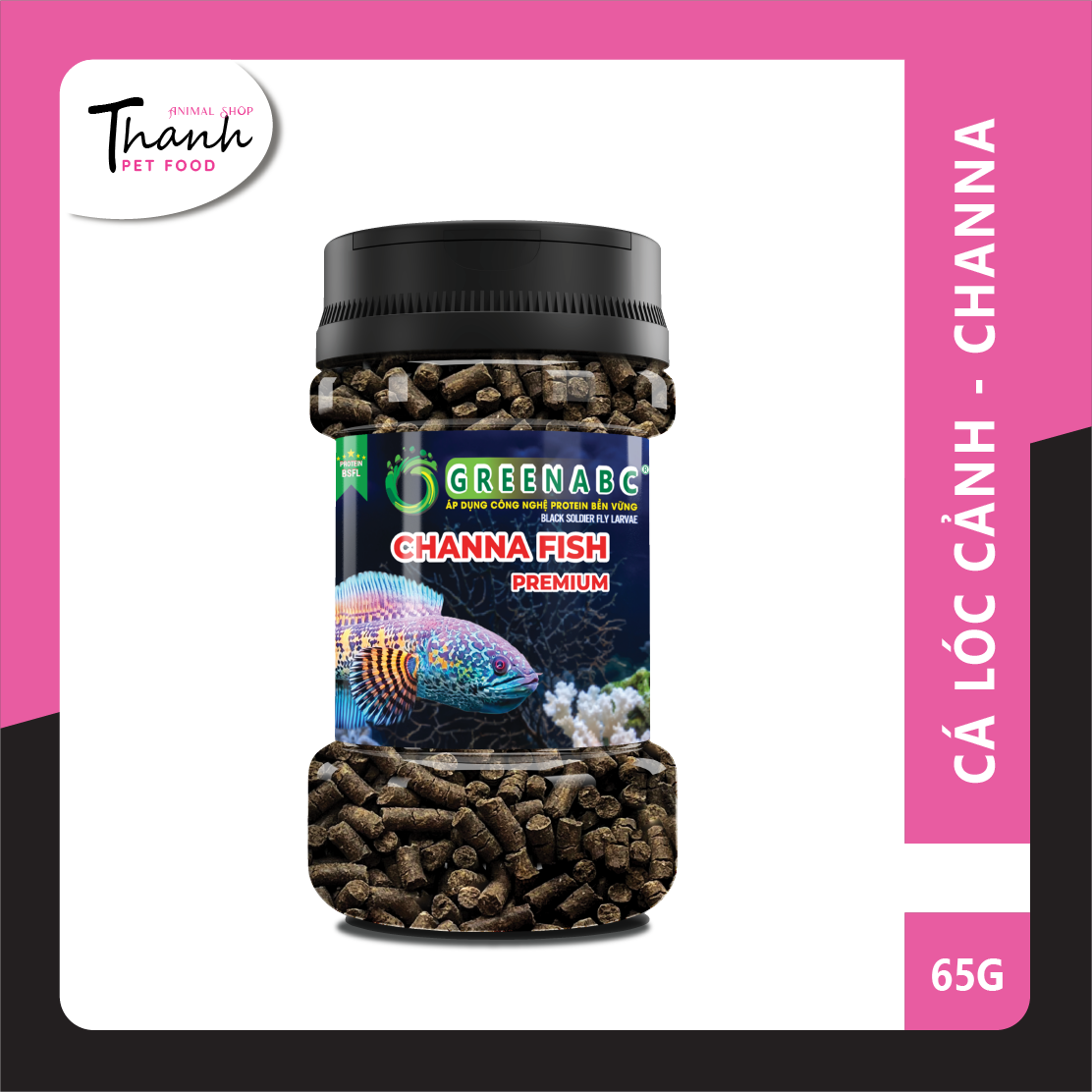 GREENABC - THỨC ĂN CÁ LÓC CẢNH - HÀM LƯỢNG PROTEIN > 40% GREENABC là thức ăn cao cấpdành cho CÁ LÓC CẢNH. Đặc biệt sản phẩm GREENABC được sản xuất theo phương pháp Áp