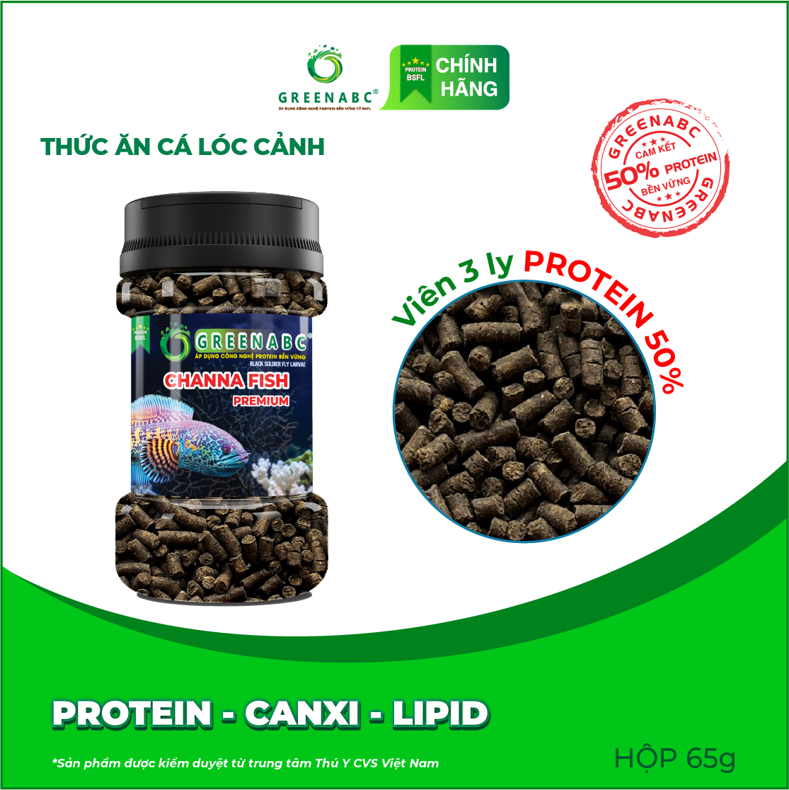 GREENABC - THỨC ĂN CÁ LÓC CẢNH - HÀM LƯỢNG PROTEIN > 40% GREENABC là thức ăn cao cấpdành cho CÁ LÓC CẢNH. Đặc biệt sản phẩm GREENABC được sản xuất theo phương pháp Áp