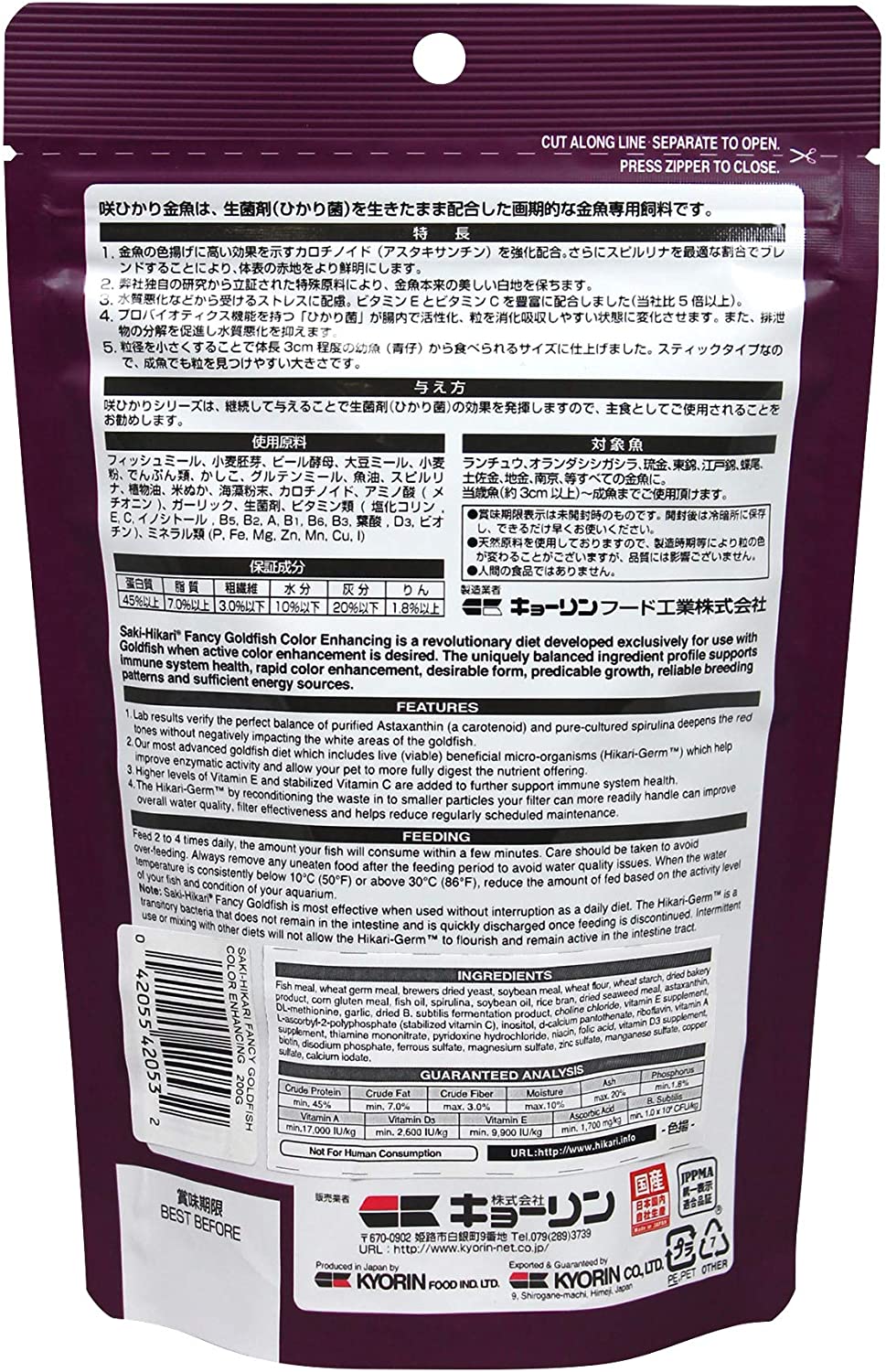 Mua tại Tiktokthức ăn cá vàng tăng màu và tăng trưởng Hikari-Nhật Bản-Cám cá vàng cao cấp - Ranchu - GOLDFISH - thức ăn Hikari -Trọng lượng gói: Túi màu Tím 200Gram, Dạng hạt chìm
