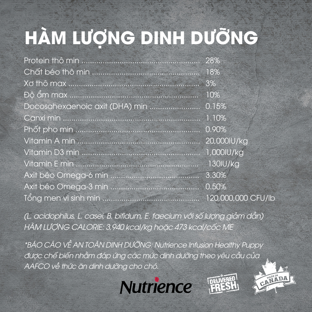 - Sản phẩm Nutrience Original Healthy Puppy được phát triển để đáp ứng các mức dinh dưỡng cho sự tăng trưởng được thiết lập bởi hồ sơ dinh dưỡng thức ăn cho chó AAFCO. Hướng dẫn cách cho ăn