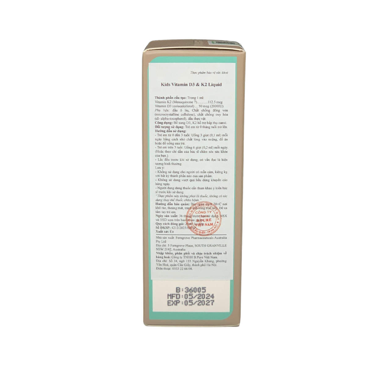 Thực phẩm bảo vệ sức khoẻ Kids Vitamin D3 & K2 Liquid - Bổ sung D3 – K2 Cho Bé 20ml