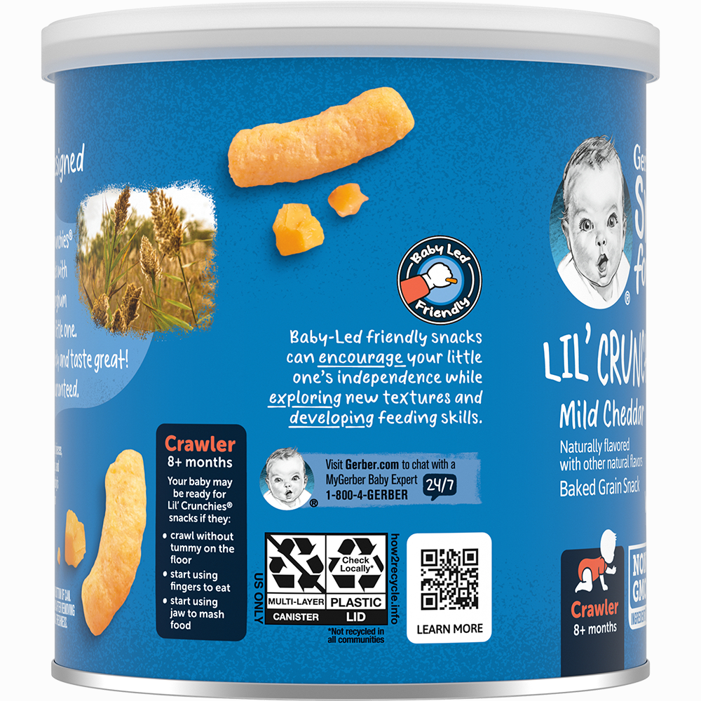 Bánh Ăn Dặm Gerber Lil's Crunchies vị Phô Mai Mild Cheddar 42g - Thực Phẩm Bổ Sung Dành cho trẻ trên 8 tháng tuổi - Bánh Gerber Crunchies với kết cấu giòn tan, kích thích
