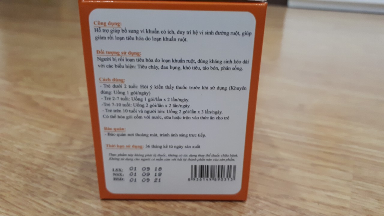 - Bổ sung vi khuẩn có ích, hỗ trợ và tái lập hệ cân bằng vi sinh đường ruột. Hỗ trợ cải thiện các rối loạn tiêu hóa do loạn khuẩn ruột, dùng kháng sinh: đau bụng, đầy bụng, tiêu chảy, táo bón.