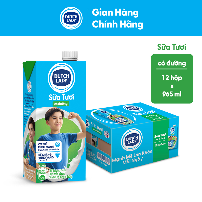 ✨Thùng 12 Hộp Sữa Tươi Tiệt Trùng Dutch Lady Cô Gái Hà Lan Có Đường (12 X 965ML)