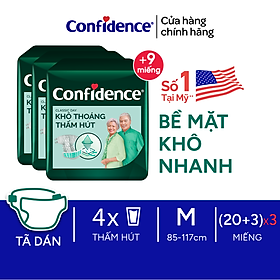✨Thùng 3 gói Tã dán người lớn Confidence Classic Day khô thoáng thấm hút size M/L gói 20+3 miếng