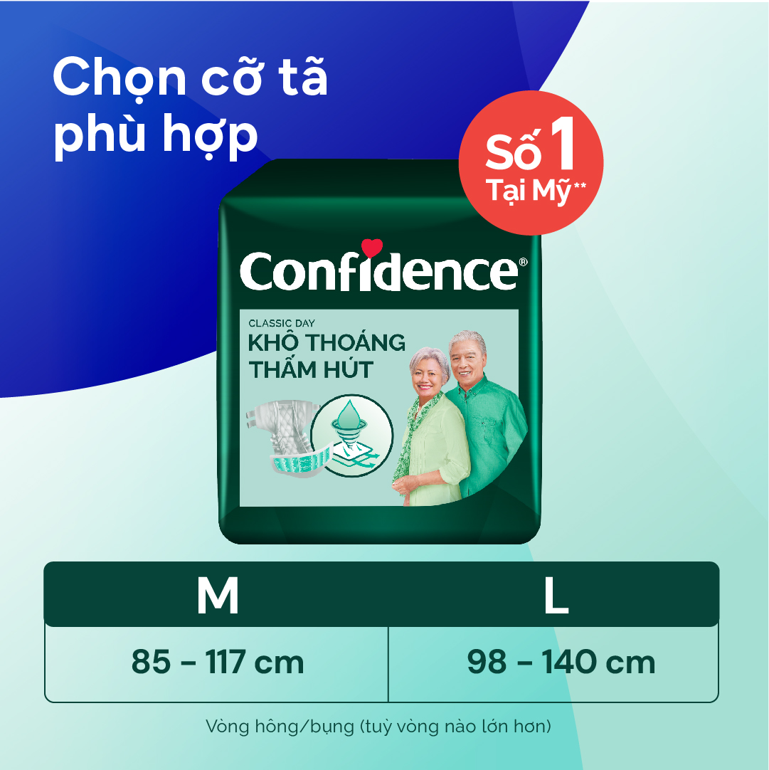 Mua tại TiktokTÃ DÁN CONFIDENCE CLASSIC DAY - SIÊU THOÁNG KHÍ, SIÊU THẤM HÚT - AN TÂM & THOẢI MÁI cho cả gia đình. Sản phẩm tăng cường độ thấm hút và giữ bề mặt tã luôn khô thoáng, là lựa chọn hiệu quả cho người dùng hạn chế khả năng đi lại. ĐẶC ĐIỂM NỔI BẬT