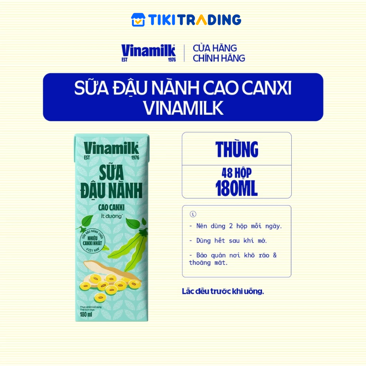 Mua tại TiktokSữa đậu nành cao canxi Vinamilk - Thùng 48 hộp 180ml