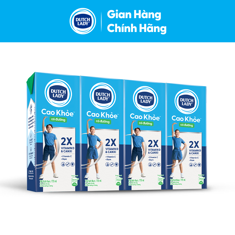 - Thùng 48 Hộp Sữa Tươi Tiệt Trùng Dutch Lady Cao Khỏe Có Đường (170ml / Hộp) - Sữa Cô Gái Hà Lan Cao Khỏe nay bổ sung gấp đôi Vitamin D giúp đẩy mạnh