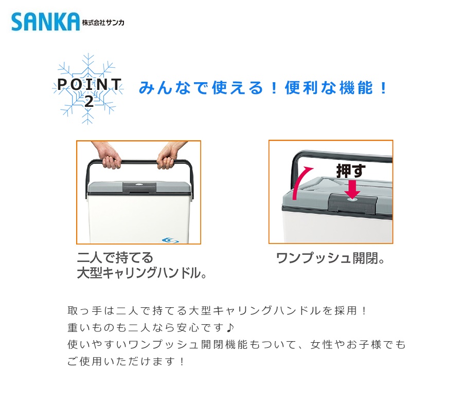 Tay cầm sử dụng quai xách lớn có thể được giữ bởi hai người, dây đai có tính linh hoạt thu gọn hoặc kéo dài cho phù hợp với từng người sử dụng