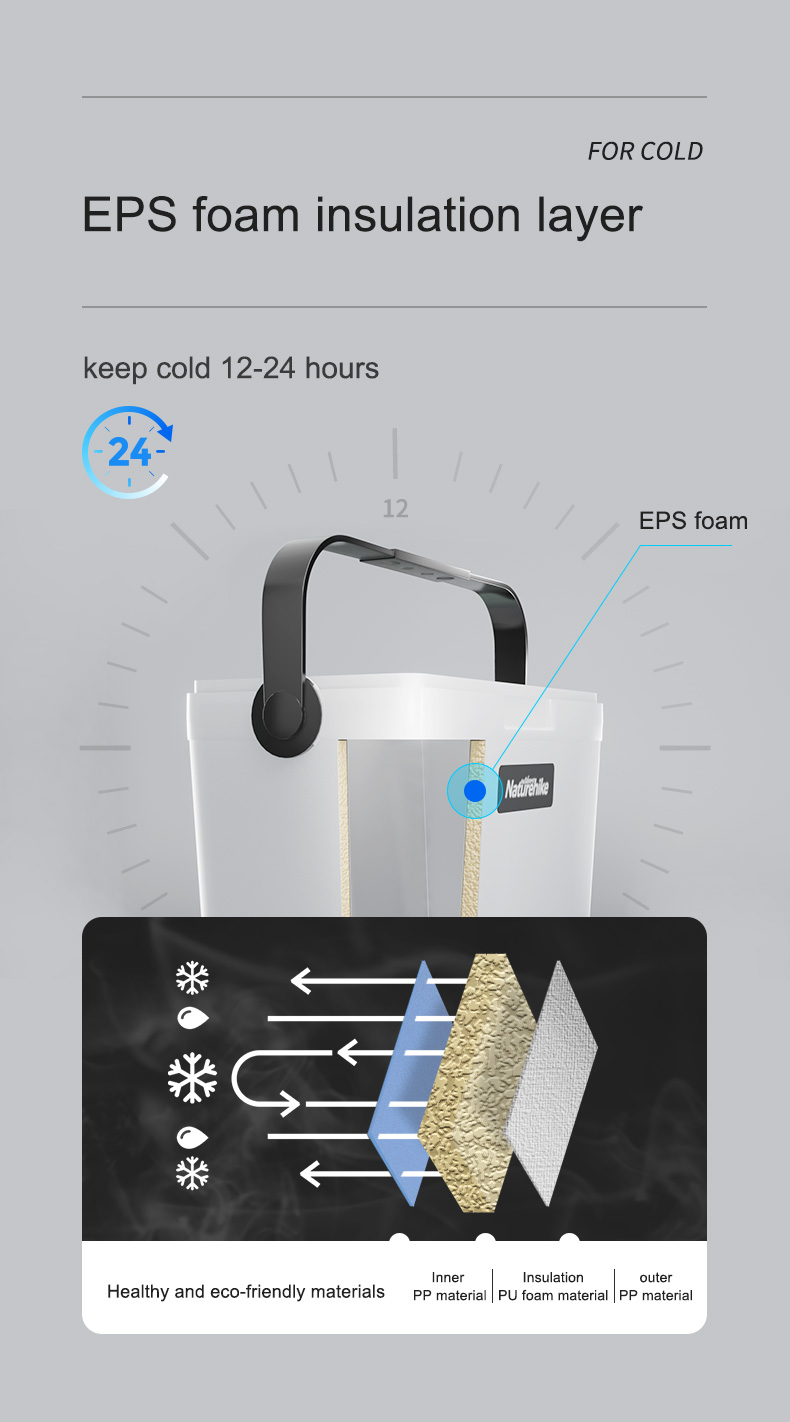 • Chất liệu: Nắp /thân /tay cầm/Thắt lưng /khóa bằng nhựa Polypropylene cao cấp bền đẹp & an toàn cho thời gian sử dụng lâu dài, lớp cách nhiệt bằng xốp EPS nhẹ, êm, giữ nhiệt tốt hạn chế được sự va đập mạnh