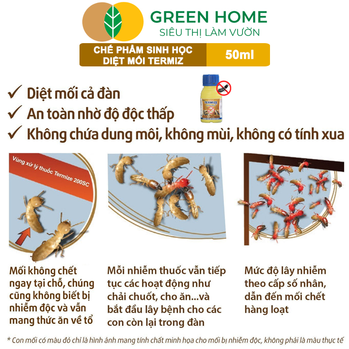 ✨Thuốc Diệt Mối Tận Gốc Greenhome Termize 200SC, Chai 50ml, Sinh Học Thế Hệ Mới, An Toàn, Không Mùi, Diệt Cả Đàn