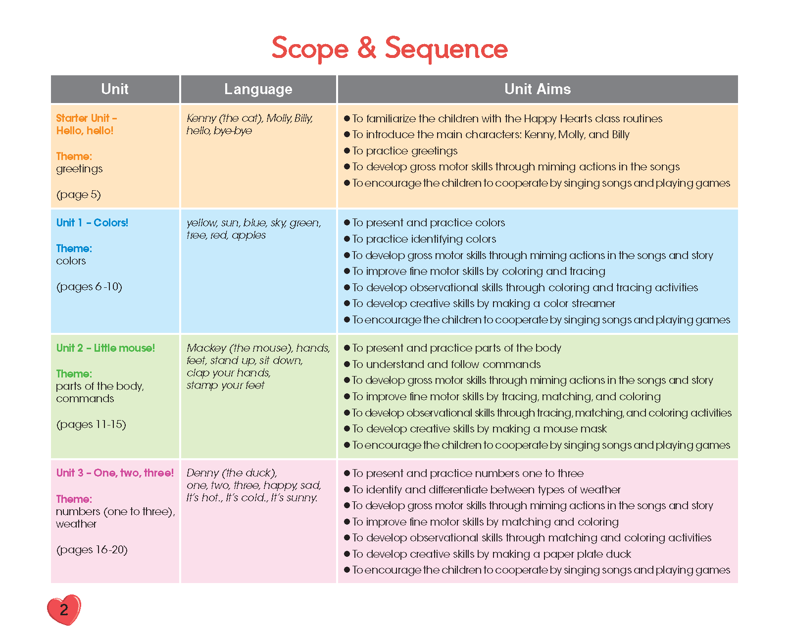 Mua tại TiktokTiếng anh Happy Hearts là bộ giáo trình dành cho trẻ từ 3 – 6 tuổi. Bộ giáo trình đưa trẻ đến thế giới phiêu lưu và học tập với niềm yêu thích, thú vị bất cứ lúc nào! Giáo trình được sử dụng khá linh hoạt tùy theo yêu cầu của nhà trường. Trẻ có thể học từng cấp độ tách riêng hoặc học liên tiếp tùy theo độ tuổi của trẻ. Bộ giáo trình được biên soạn với mục tiêu giúp trẻ phát triển toàn diện, bao gồm: Social (Xã hội), Physics (Thế chất), Intellectual (Nhận thức), Creative (Tính sáng tạo), Emotional (Tình cảm).