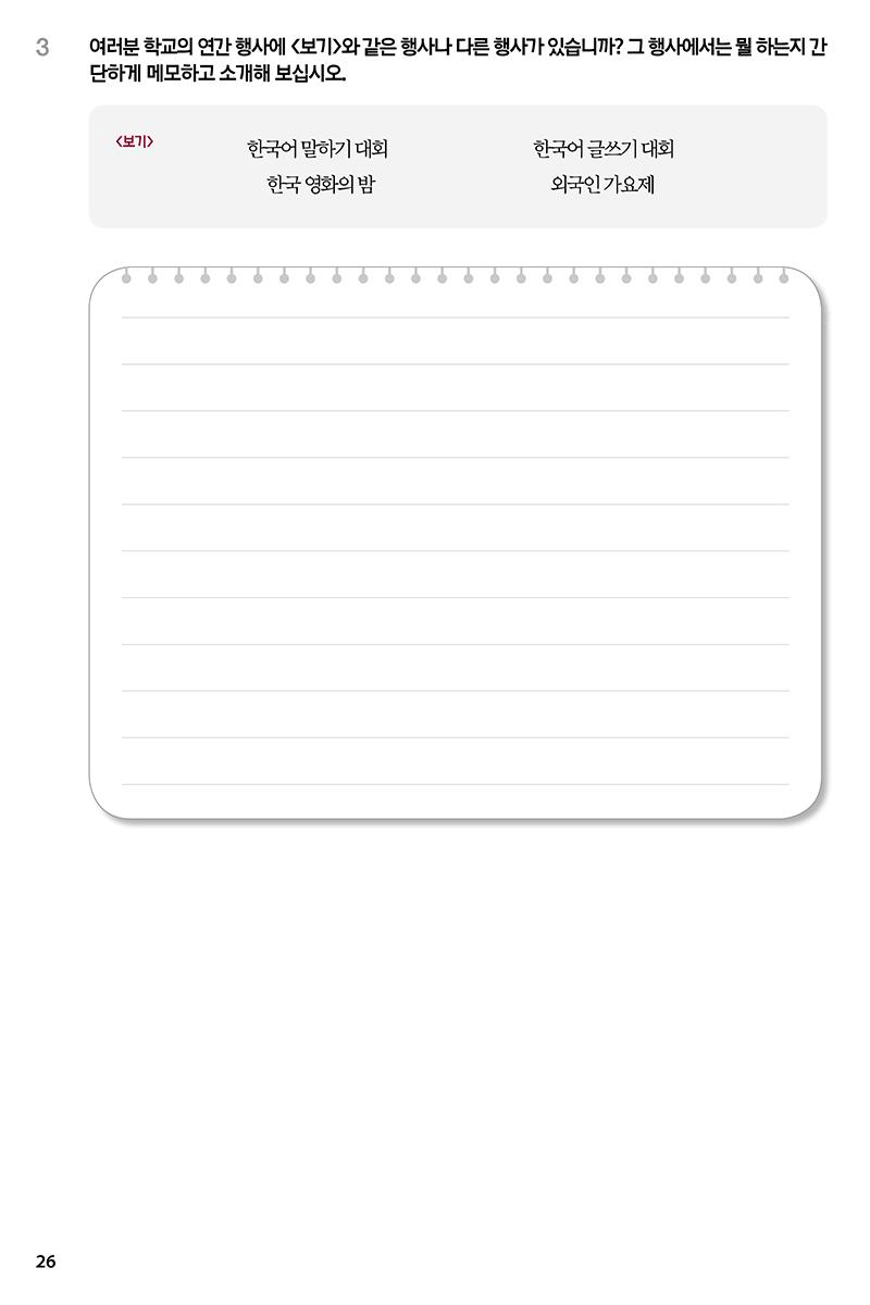 • Luyện viết: Gồm các dạng bài : dịch từ tiếng Việt sang tiếng Hàn, điền từ vào chỗ trống và bài viết nâng cao