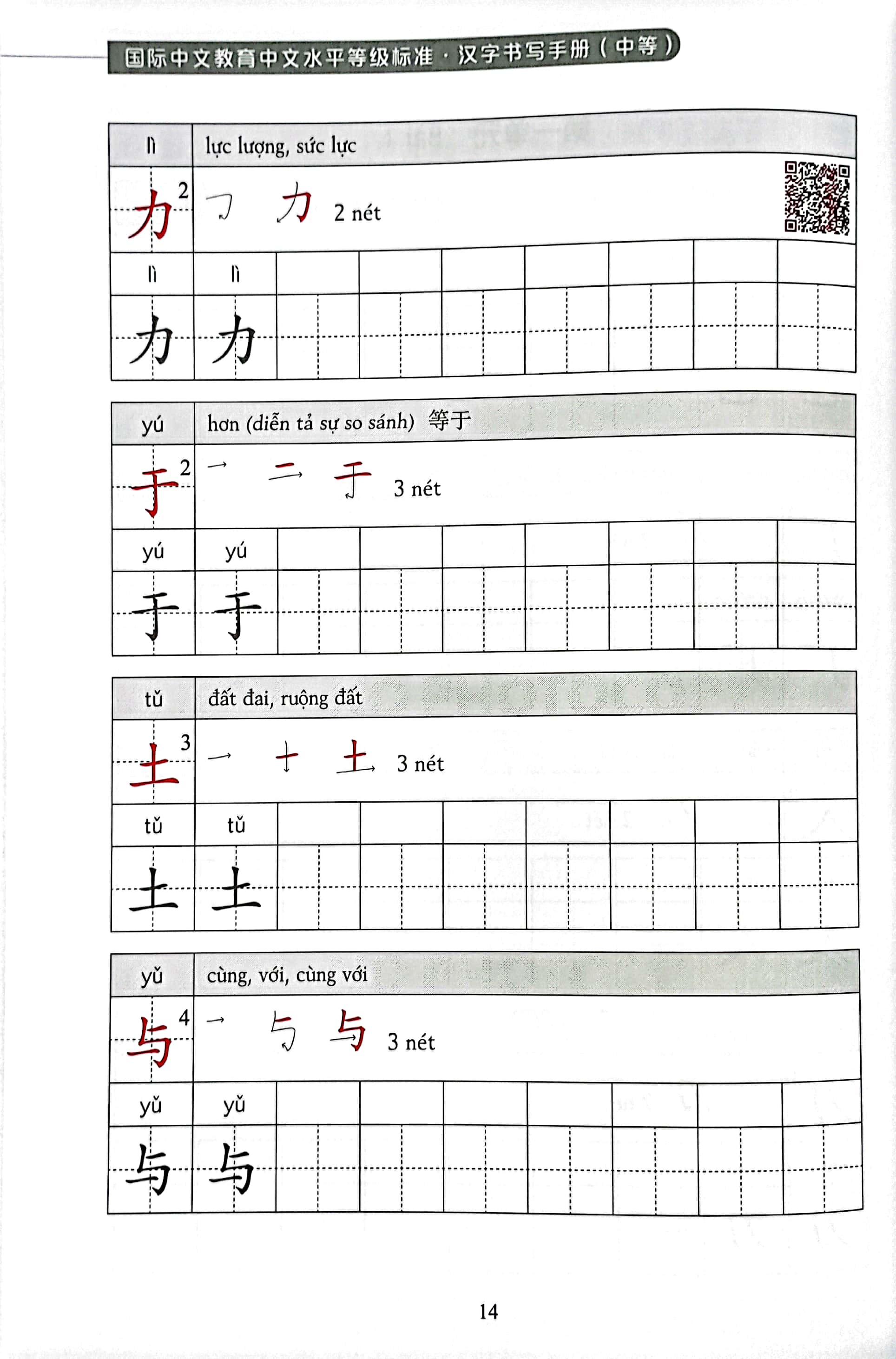 • Quét mã QR, người học có thể xem hình ảnh động thể hiện thứ tự các nét khi viết của đa số chữ Hán.
