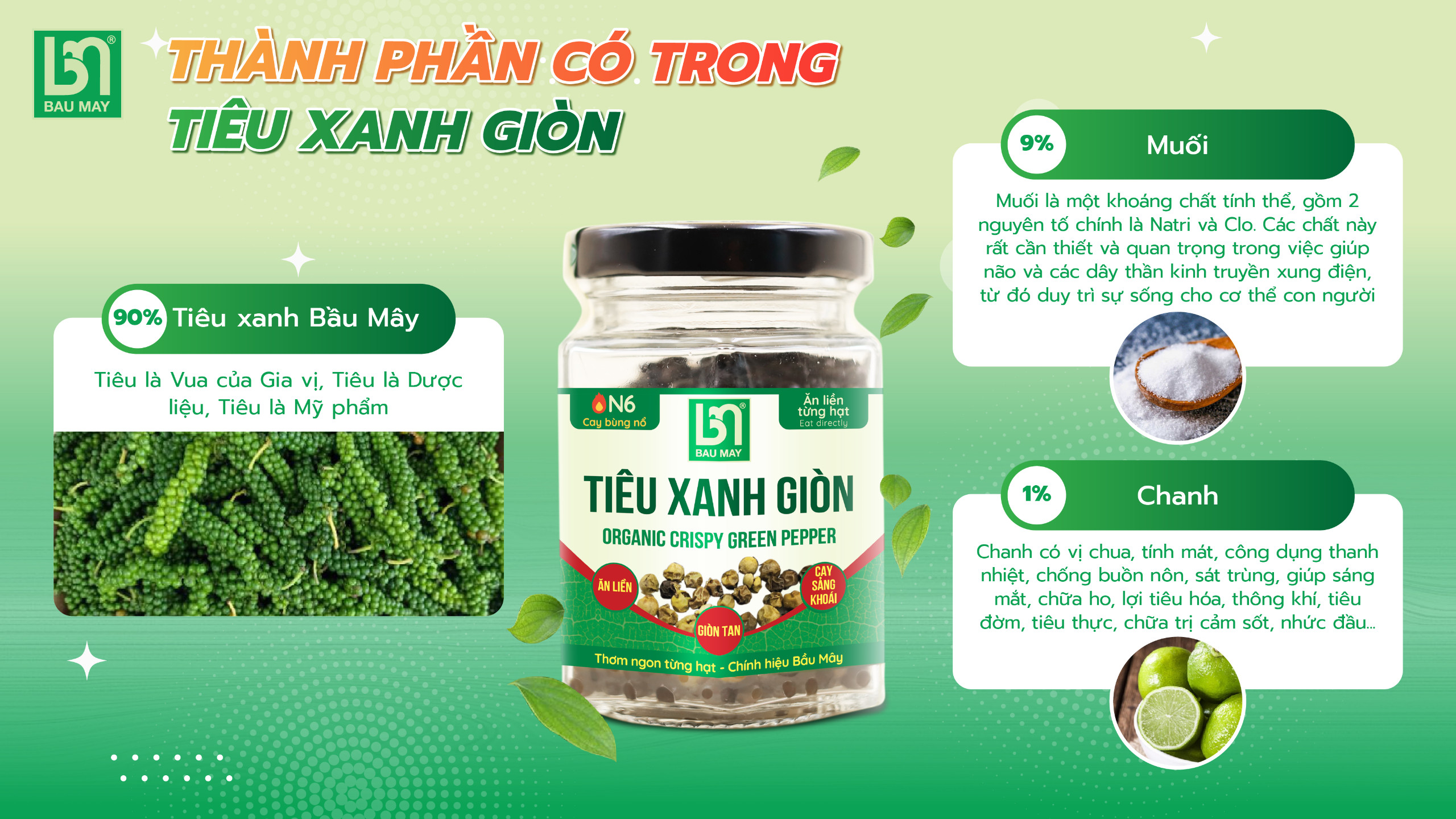 Bầu Mây là đơn vị đầu tiên và duy nhất tại Việt Nam chủ động vùng nguyên liệu, Tiêu Bầu Mây được chứng nhận Nông Nghiệp Hữu Cơ, theo phương pháp hữu cơ gia truyền.