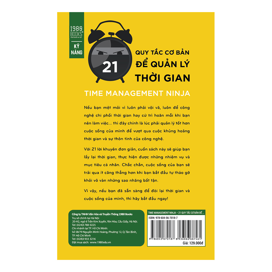 Với 21 lời khuyên đơn giản, cuốn sách này sẽ giúp bạn lấy lại thời gian, thực hiện được những nhiệm vụ và mục tiêu cá nhân. Chắc chắn, cuộc sống của bạn sẽ trải qua ít căng thẳng hơn khi bạn bắt đầu tự tháo gỡ khỏi vô vàn những sao nhãng bất tận. Vì vậy, nếu bạn đã sẵn sàng để đòi lại thời gian và cuộc sống của mình, thì hãy bắt đầu ngay!