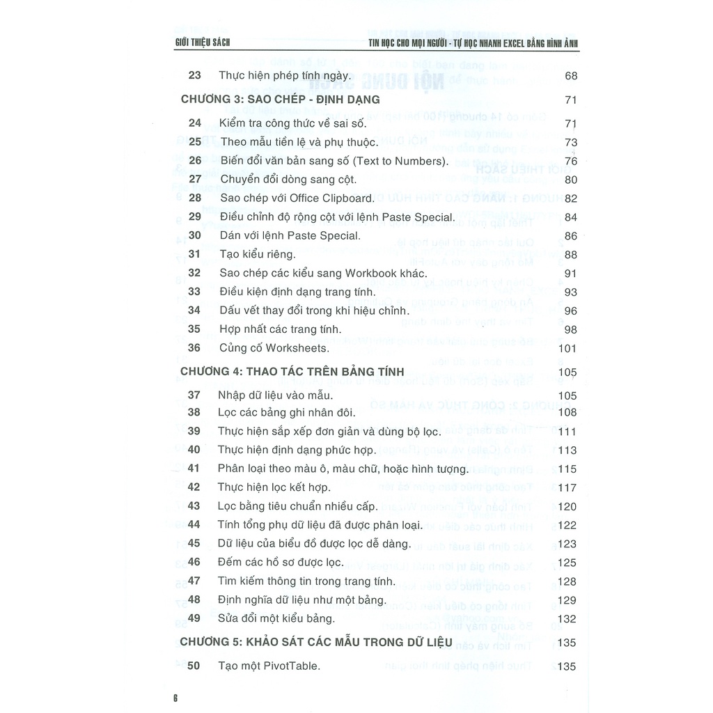 Excel Dành Cho Người Bắt Đầu Sách trình bày qua 14 chương với các hướng dẫn từng bước giúp các bạn tiết kiệm thời gian cũng như đạt năng suất hơn khi làm việc với