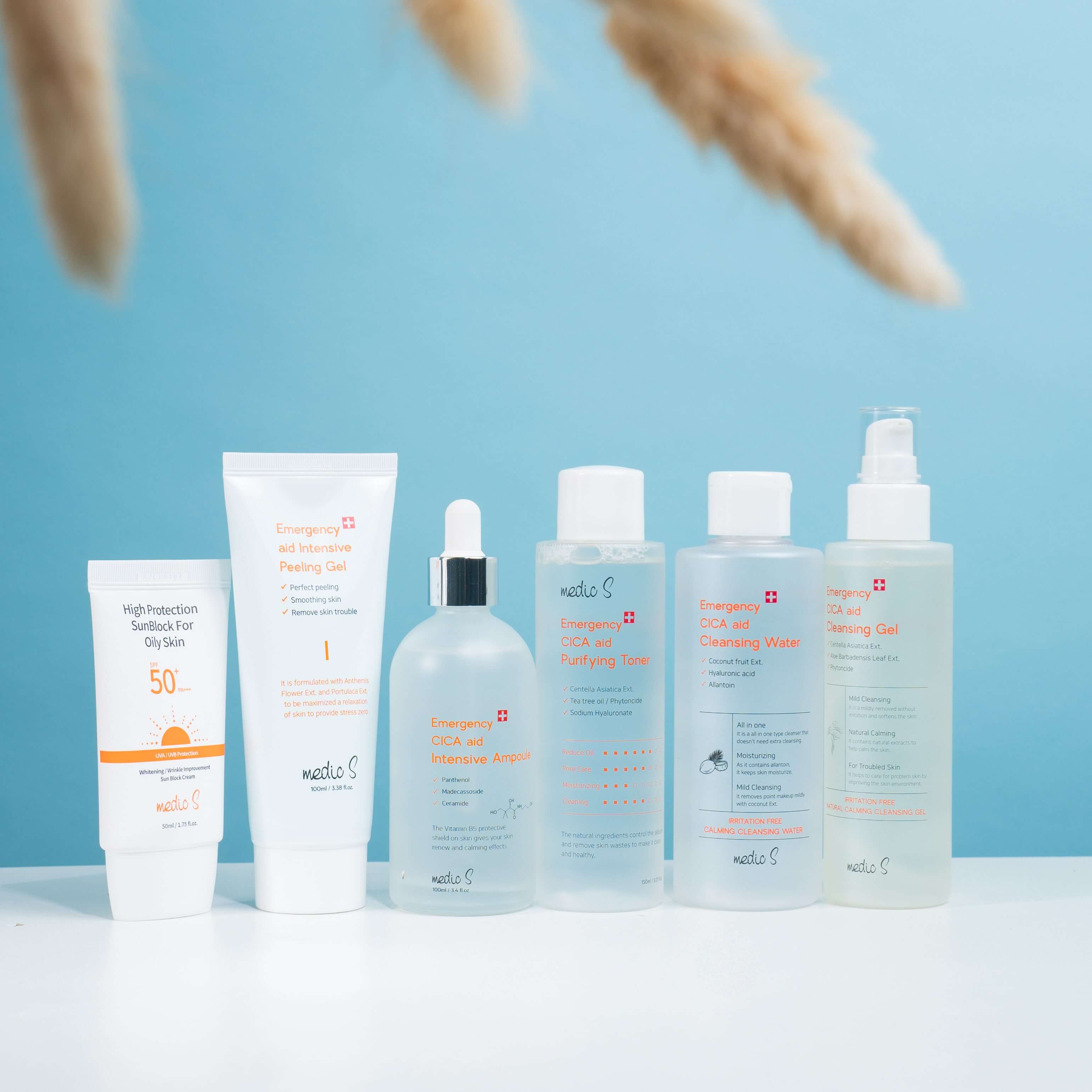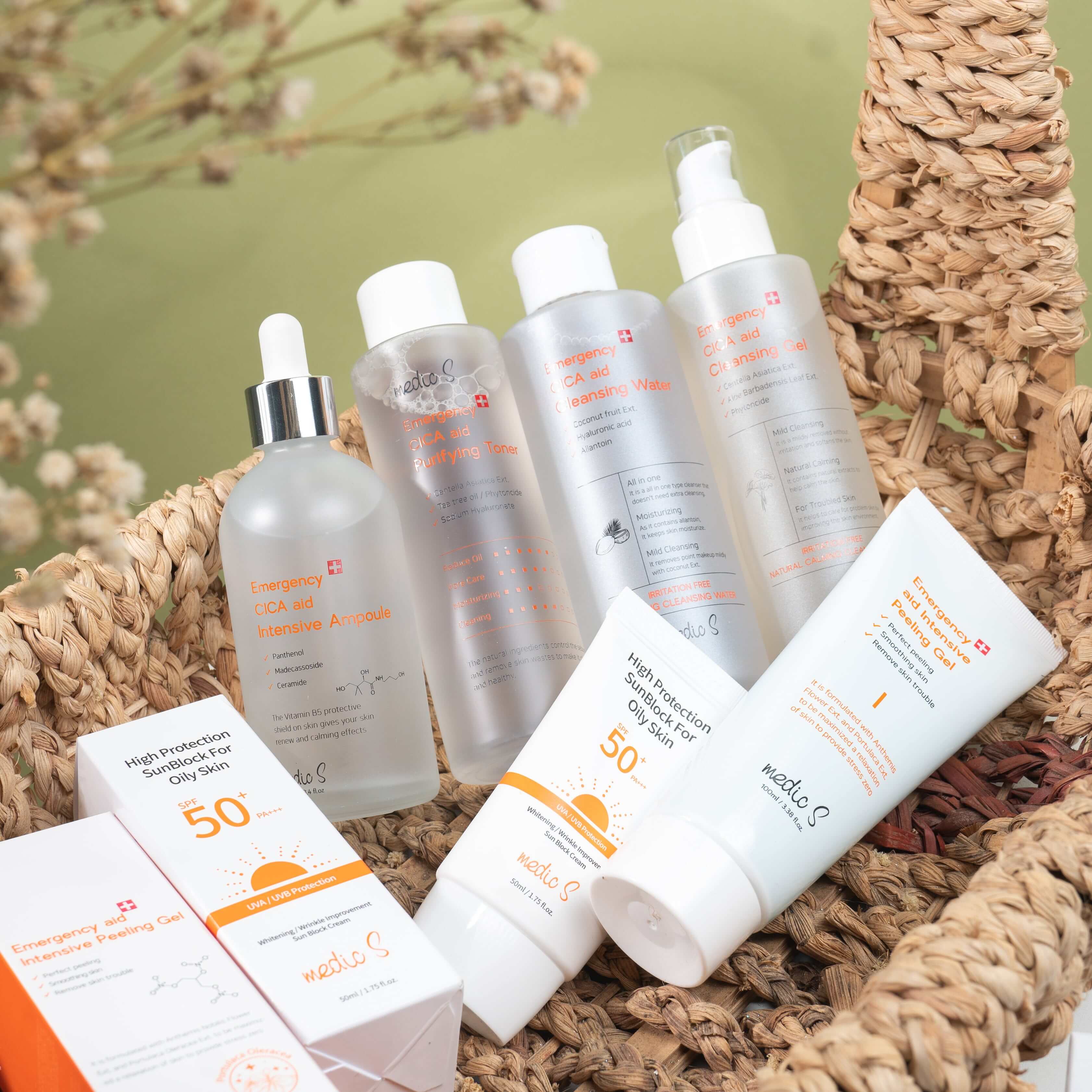 - Tinh chất căng bóng, cấp ẩm và mềm mịn – Emergency CICA aid Intensive Ampoule – Renew and Calming là sản phẩm cấp ẩm tuyệt vời cho làn da. Tinh chất căng bóng cấp ẩm và mềm mịn MedicS sẽ cung cấp độ ẩm dồi dào cho da, giúp hạn chế tình trạng mất nước, giúp cho làn da luôn tươi mát, căng bóng và mềm mịn. Tinh chất căng bóng cấp ẩm và mềm min MedicS có chứa Argan oil, là một loại dầu hiếm được chiết xuất từ hạt của quả cây Argan, hỗn hợp các loại axit béo omega, vitamin E, axit linoleic trong tinh dầu argan giúp dưỡng ẩm dịu nhẹ, làm mềm vùng da khô ráp, giảm tình trạng nhờn, mụn và có thể thấm sâu nuôi dưỡng từng tế bào da, chống lão hóa và giúp da săn chắc. Trong công thức có chứa Centella asiatica với thành phần hoạt động chính là các Triterpenoids Pentacyclic giúp cải thiện sức bền của da, cấp ẩm tuyệt đối, làm chậm quá trình làm sạm, nám da, giúp da căng mịn, tươi trẻ, trắng sáng hơn và Ceramide giúp thiết lập hàng rào bảo vệ da tối ưu.