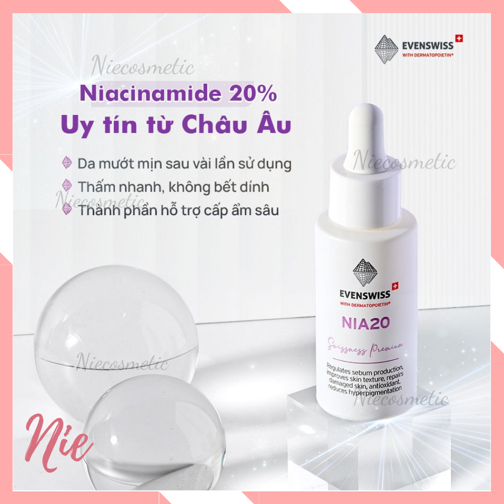 ✨TINH CHẤT CHỐNG LÃO HÓA, ĐIỀU TIẾT BÃ NHỜN EVENSWISS NIA20 30ML