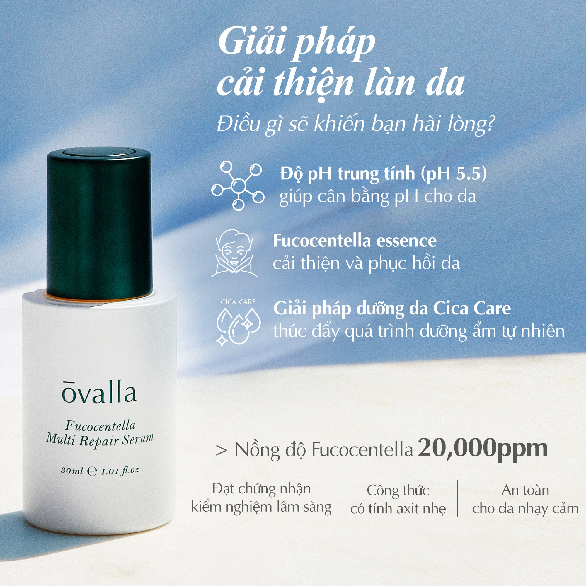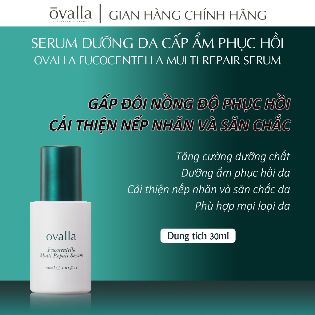 - Tinh chất dưỡng phục hồi Ovalla Fucocentella Multi Repair Serum là sản phẩm tinh chất giúp làm trắng, cải thiện tình trạng nếp nhăn, khô da và mất độ đàn hồi. Serum Premium đến từ Ovalla có khả năng thẩm thấu đến tận sâu bên trong, cung cấp độ ẩm và mang lại sức sống cho làn da.