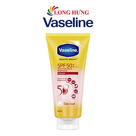 Tinh chất dưỡng thể chống nắng Vaseline Healthy Bright SPF 50+ PA++++Thành phần:+ SPF 50+ PA++++: giúp bảo vệ da chống lại tác hại của tia UVA/UVB lên đến 98%.+ 10x Niacinamide (vitamin B3): giúp d...