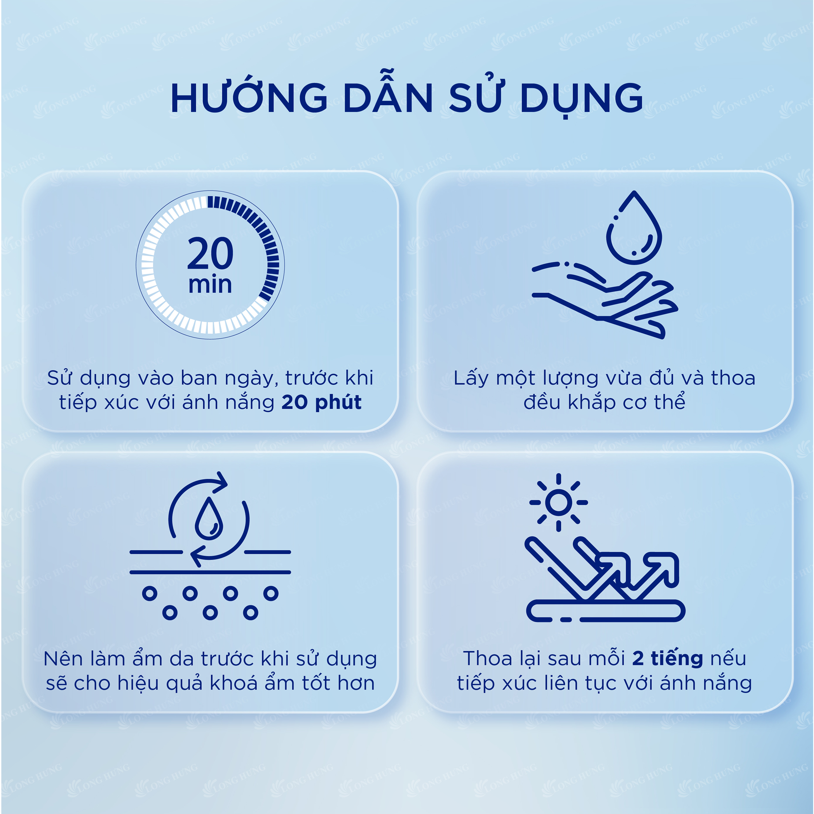 • Thoa lại sau mỗi 2 tiếng tiếp xúc liên tục với ánh nắng.