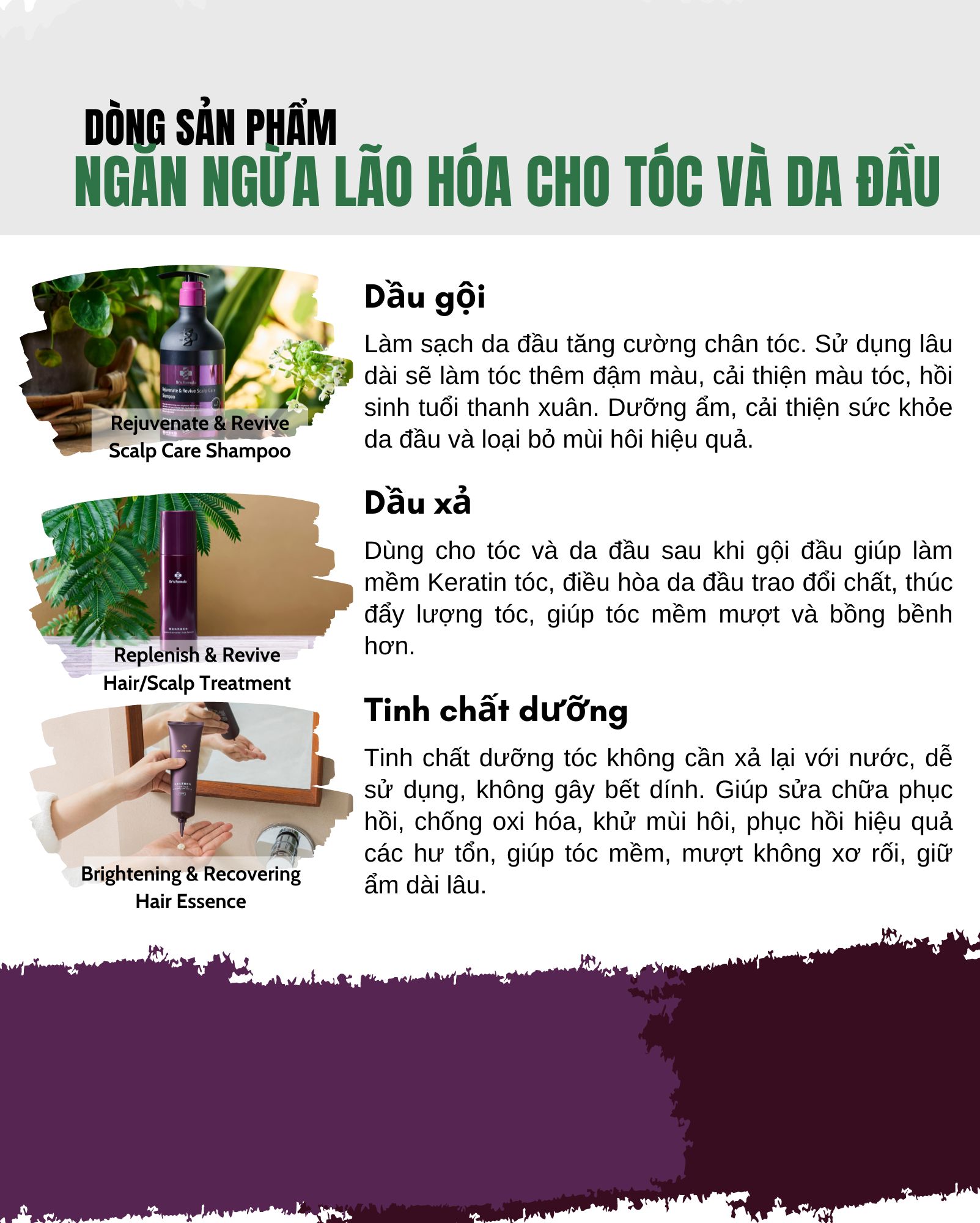 ĐỐI TƯỢNG: Phù hợp cho tóc có dấu hiệu lão hóa (lưa thưa, mỏng yếu, bết dính, khô ráp, bạc màu, dễ có mùi hôi).