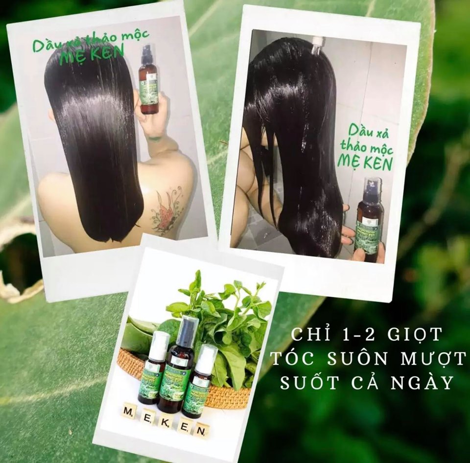 HƯỚNG DẪN SỬ DỤNG : Sau khi gội đầu xong nhỏ 1 giọt vào tay và xoa đều lên phần ngọn tóc ướt, massge tóc từ 2-3 phút. Sau đó xả sạch với nước. KẾT HỢP: hoàn hảo với Dầu gội thảo mộc Mẹ ken cho bạn giải pháp chăm sóc bền vững lâu dài. Bộ đôi dầu gội và dầu xả Mẹ ken. Chị em nào hay bị rụng tóc, tóc thưa, khô thì đây là giải pháp hữu hiệu cho bạn! Dùng sản phẩm hoàn toàn từ thiên nhiên đã được Mẹ ken kiểm tra rất nghiêm ngặt khi đưa vào sản xuất nên rất yên tâm về chất lượng nhé cả nhà !