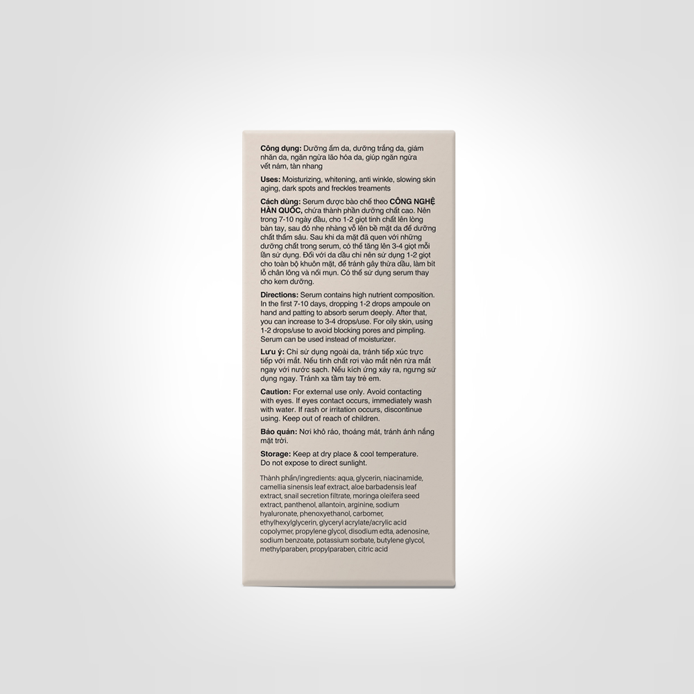 TÍNH NĂNG Làm giảm nếp nhăn, phục hồi và tăng độ đàn hồi cho da, làm giảm sắc tố và làm trắng da THÀNH PHẦN Hoa hạt dẻ, nhân sâm Niacinamide, Adenosine CÁCH SỬ DỤNG