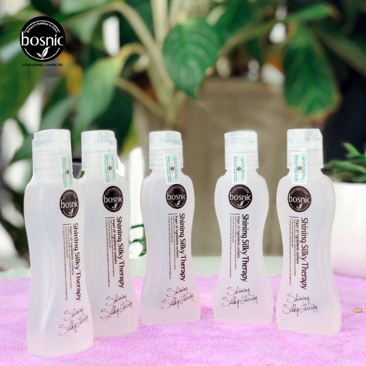 Tinh Dầu Siêu Mượt Bosnic - Shining Silky Therapy 60ml - Chính Hãng Hàn Quốc Tinh Dầu Siêu Mượt Bosnic - Shining Silky Therapy 60ml là lựa chọn hàng dầu trong sản phẩm dưỡng tóc. Với tinh chất từ quả Argan giúp cho tóc sau khi sử dụng sản phẩm luôn óng mượt, giảm gãy rụng,chẻ ngọn, khô xơ và vô số các vấn đề về tóc đều sẽ được giải quyết chỉ với 1 chai tinh dầu Silky. Đối với những khách hàng thường xuyên sử dụng các loại máy nhiệt để tạo kiểu tóc (uốn, duỗi,bấm tóc, v..v) hoặc đã từng sử dụng qua hóa chất làm tóc thì tóc sẽ dần mất đi độ cân bằng, suôn mượt và chắc khỏe vốn có, chính vì thế, việc sử dụng tinh dầu siêu mượt Shining Silky Therapy trước khi sử dụng hóa chất làm tóc sẽ giúp giảm thiểu hư tổn cho tóc, cân bằng lại độ ẩm và giúp tóc luôn chắc khỏe, bóng mượt. Giới thiệu về thương hiệu: