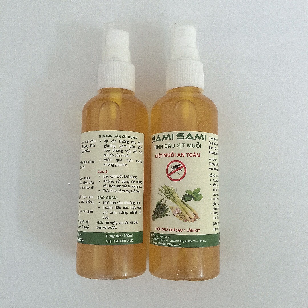 Mua tại TiktokSAMI SAMI - Tinh dầu xịt muỗi - diệt muỗi an toàn Bạn có biết rằng có những loại cây mà mùi hương của nó là nỗi sợ hãi của côn trùng như muỗi không? Chẳng hạn như mùi của cây cỏ xạ hương là chất độc mà muỗi rất sợ hãi, nhưng nó lại hoàn toàn vô hại với con người. Xạ hương còn mang đến cảm giác thư giãn tinh thần cho con người nữa. Một số loại cây khác như đinh hương, sả, bạc hà, tràm trà cũng có công dụng đuổi muỗi, nhưng hoàn toàn an toàn với con người. Thành phần tinh dầu diệt muỗi SAMI SAMI: Chiết xuất từ các loại cây cỏ có mùi như Tinh dầu cỏ xạ hương, tinh dầu bạc hà, tinh dầu sả java, đinh hương, tràm trà, phụ gia khá SAMI SAMI an toàn, không ảnh hưởng đến sức khoẻ của con người và vật nuôi. Công dụng thuốc xịt muỗi SAMI SAMI: