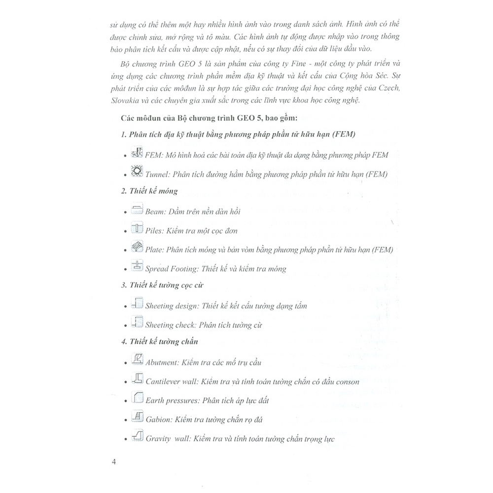 trong những sản phẩm đó là GEO 5 - Bộ chương trình được phát triển bởi tập đoàn FINE, Cộng hòa Séc. Trong cuốn sách này, sẽ trình bày chi tiết: cơ sở lý thuyết, công