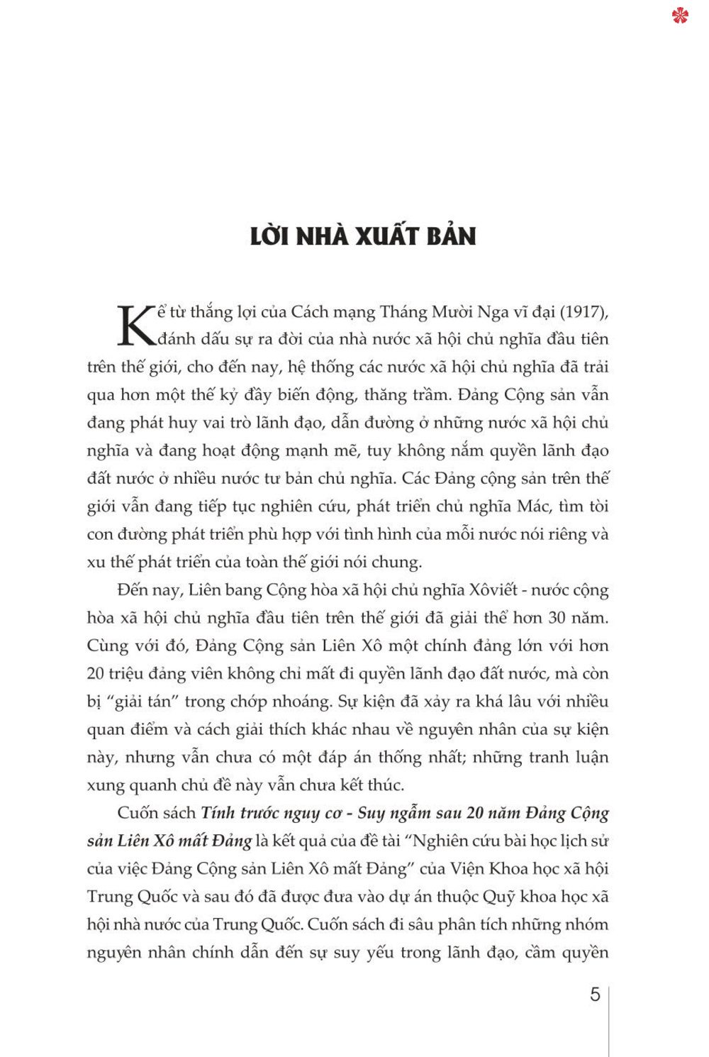 Tính trước nguy cơ - Suy ngẫm sau 20 năm Đảng Cộng sản Liên Xô mất đảng" là một tác phẩm nghiên cứu sâu rộng, cung cấp cái nhìn toàn diện về sự sụp đổ