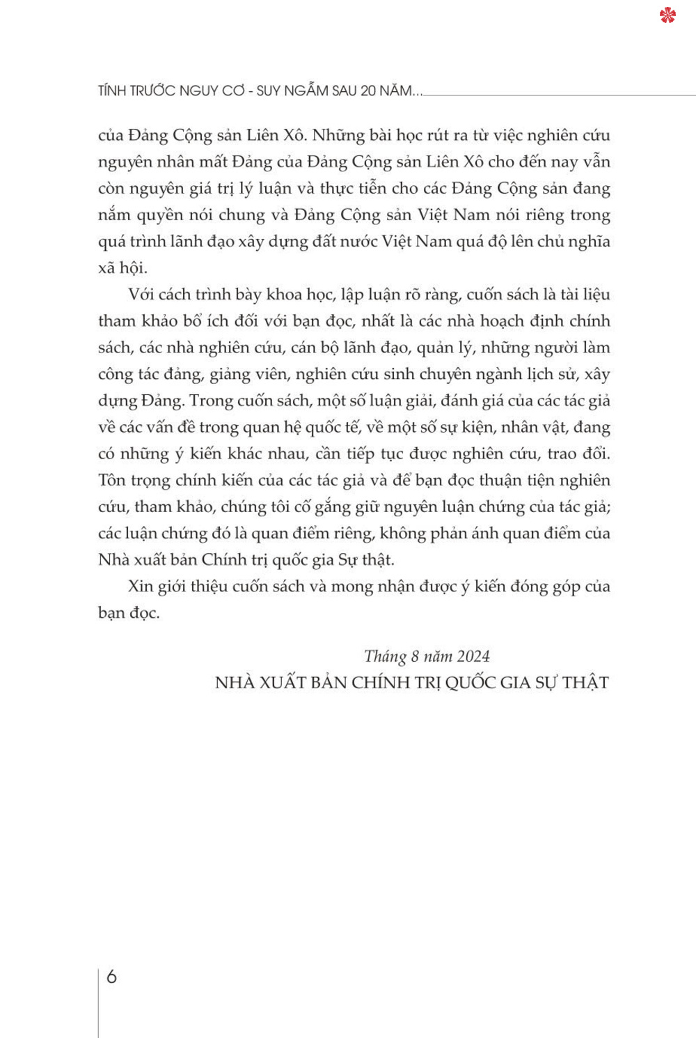 ✨Tính trước nguy cơ - Suy ngẫm sau 20 năm Đảng Cộng sản Liên Xô mất đảng (bản in 2024)