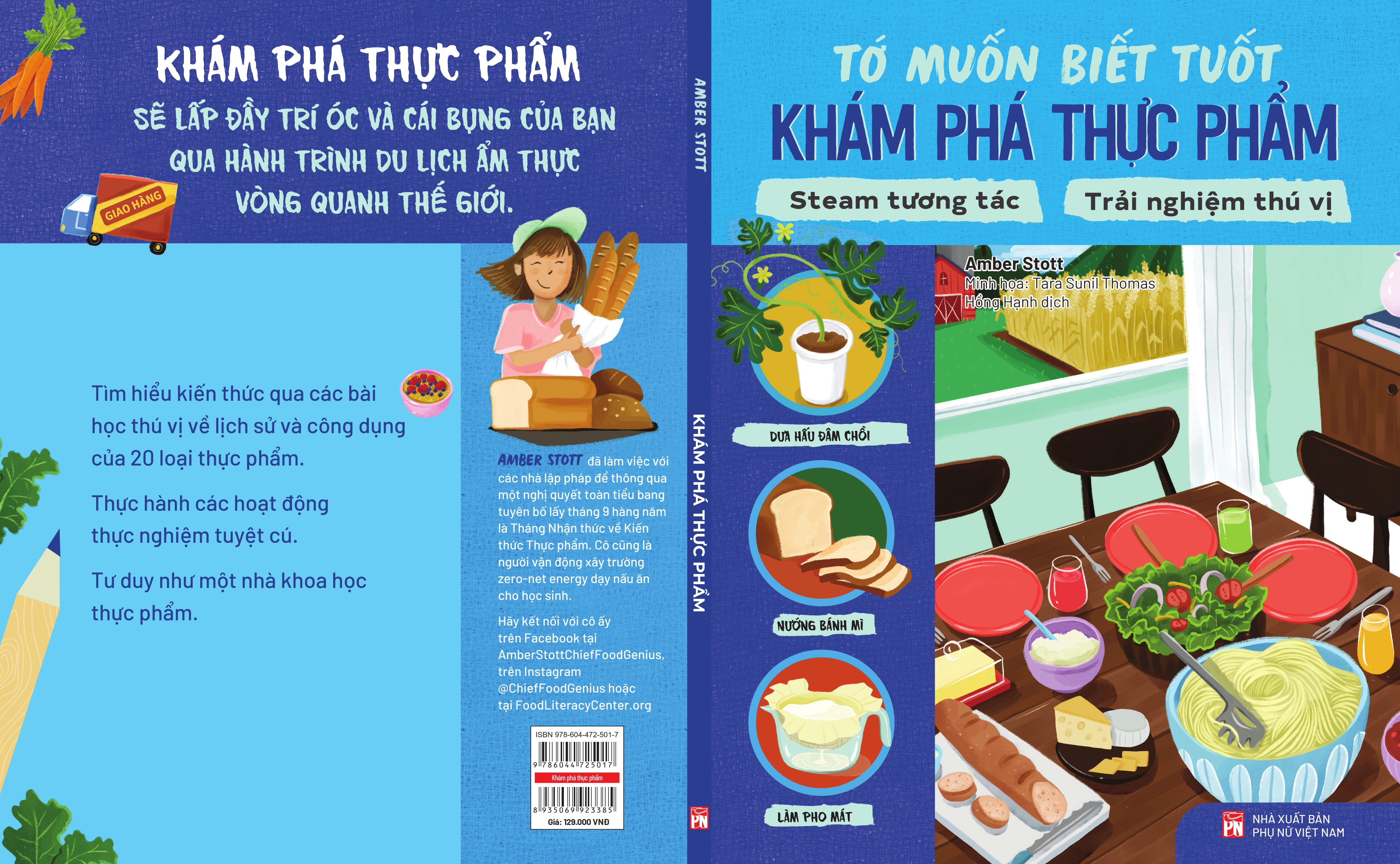 Mua tại Tiktok- Tên sách: TỚ MUỐN BIẾT TUỐT – KHÁM PHÁ THỰC PHẨM Tác giả: Amber Stott Minh họa: Tara Sunil Thomas Dịch giả: Hồng Hạnh Thể loại: Bổ trợ kiến thức cho trẻ - Thiếu nhi Khổ sách: 20x25cm Tổng số trang: 100 Giá bìa: 129.000đ Mã ISBN: 978-604-56-4681-6 Năm xuất bản: 2024 KHÁM PHÁ THỰC PHẨM sẽ lấp đầy trí óc và cái bụng của bạn qua hành trình du lịch ẩm thực vòng quanh thế giới. “Tớ muốn biết tuốt: Khám phá thực phẩm” đưa trẻ bước vào hành trình khám phá những bí ẩn về lịch sử, khoa học và văn hoá ẩm thực, những sự thật thú vị và hé lộ về các nền ẩm thực trên thế giới. Đây là một cuốn sách dành cho những người trẻ muốn khám phá thế giới ẩm thực. Ngoài những thông tin bổ ích và độc đáo về thực phẩm như nguồn gốc của thực phẩm, lịch sử văn hoá, cách nó ảnh hưởng đến cơ thể và giúp trẻ cảm thấy kết nối với thực phẩm mà mình ăn hằng ngày… Với 6 chương cùng 20 bài học, không chỉ giúp trẻ hiểu rõ hơn về những món ăn hằng ngày mà còn mang đến những kiến thức thú vị về nguồn gốc, cách chế biến và giá trị dinh dưỡng của thực phẩm. Điểm đặc biệt của cuốn sách là nó không chỉ đưa ra những bài học, lý thuyết khô khan mà sau đó, trẻ sẽ có cơ hội vận dụng kiến thức để hoàn thành hoạt động trải nghiệm, thực hành và được hướng dẫn để ghi chép lại những thu hoạch của bản thân: Bài học, sự thật thú vị về món ăn: Các bài học được minh hoạ đầy màu sắc, giúp độc giả tìm hiểu và nghiên cứu về 20 loại thực phẩm khác nhau. Chúng ta sẽ cùng tìm hiểu lịch sử của những loại thực phẩm này, bao gồm cả nguồn gốc của chúng và các món ăn phái sinh có liên quan. Hoạt động thực nghiệm: Vận dụng dụng các kiến thức ở phần trên qua hoạt động trải nghiệm, thực hành. Mỗi một hoạt động thực nghiệm là một công thức nấu ăn hoặc thí nghiệm khoa học kèm theo các nguyên vật liệu cần thiết và hướng dẫn cụ thể để hoàn thành hoạt động. Ghi chép khoa học: Giúp trẻ hình thành lối tư duy như một nhà khoa học và nắm bắt những gì đang được học. Trẻ sẽ phải tự đào sâu suy nghĩ vận dụng các kiến thức ở phần bài học, trả lời những câu hỏi như: Bạn đã quan sát thấy được những gì? Bạn đã thực hành những gì? Mối liên hệ giữa hoạt động thực nghiệm này với văn hoá lịch sử là gì?