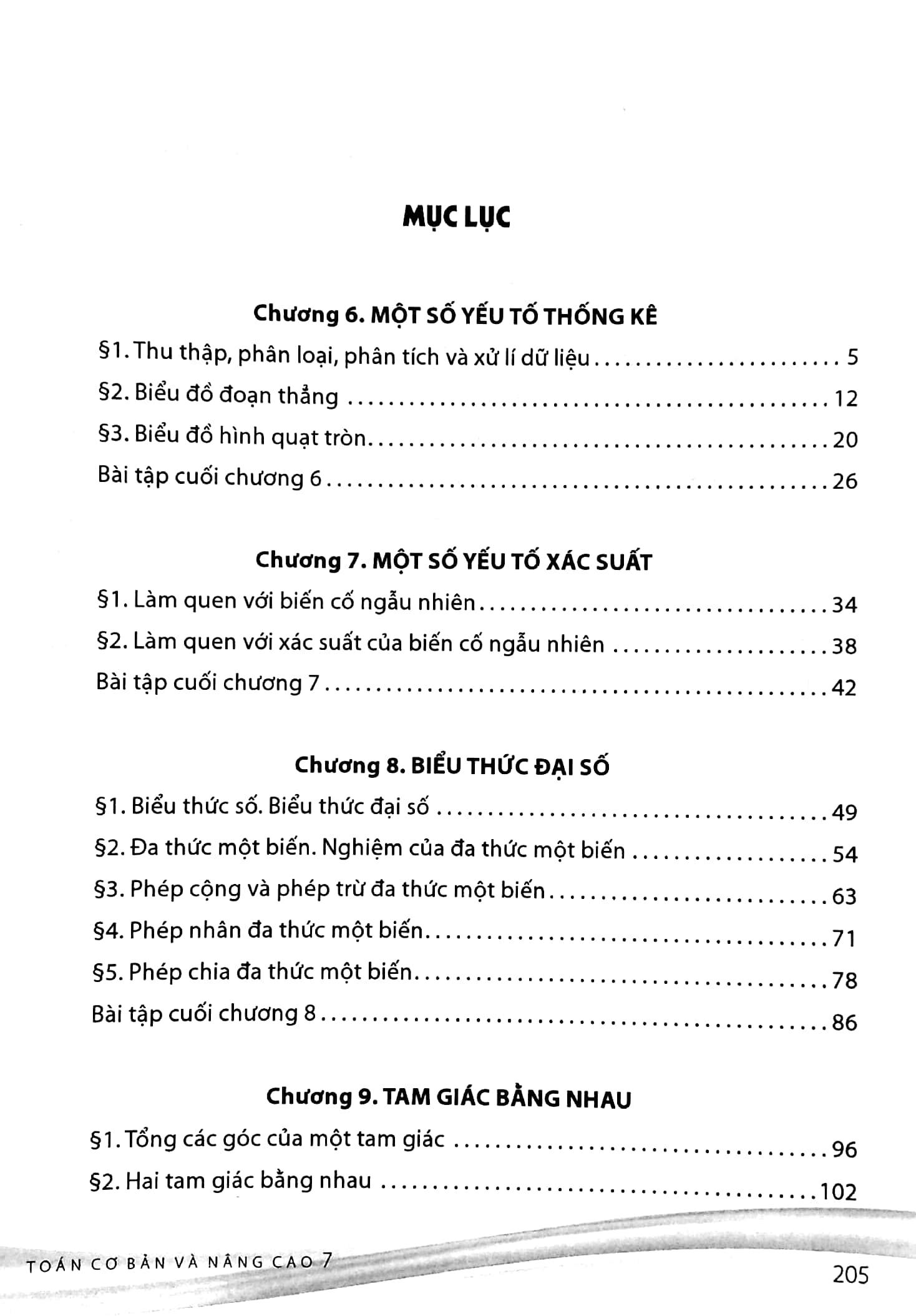 Thực hiện Chương trình Giáo dục phổ thông mới ban hành kèm theo Thông tư số 32/2018/TT-BGDĐT của Bộ trưởng Bộ Giáo dục và Đào tạo, năm học 2022-2023 theo lộ trình, cả nước tiếp tục thay sách giáo khoa lớp 7 nói riêng, bậc trung học cơ sở nói chung, với nhiều bộ sách giáo khoa tùy chọn. Nhằm giúp các em học sinh lớp 7 có tài liệu tham khảo, học tập bồi dưỡng và nâng cao kiến thức môn Toán, chúng tôi biên soạn quyển “Toán cơ bản và nâng cao 7” gồm 2 tập có nhiều điểm mới, với nội dung bám sát theo chương trình giáo dục phổ thông hiện hành của Bộ Giáo dục và Đào tạo.