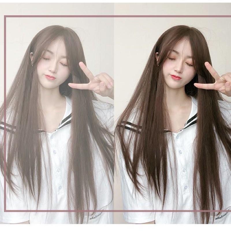 THÔNG TIN SẢN PHẨM:   Loại: Mái Hime mái thưa   Chất liệu: Tóc th.ậ t 100% Uốn, Ép, Nhuộm đều được.   Màu sắc: Màu nâu trầm, Màu nâu socola, Màu nâu sáng, Màu